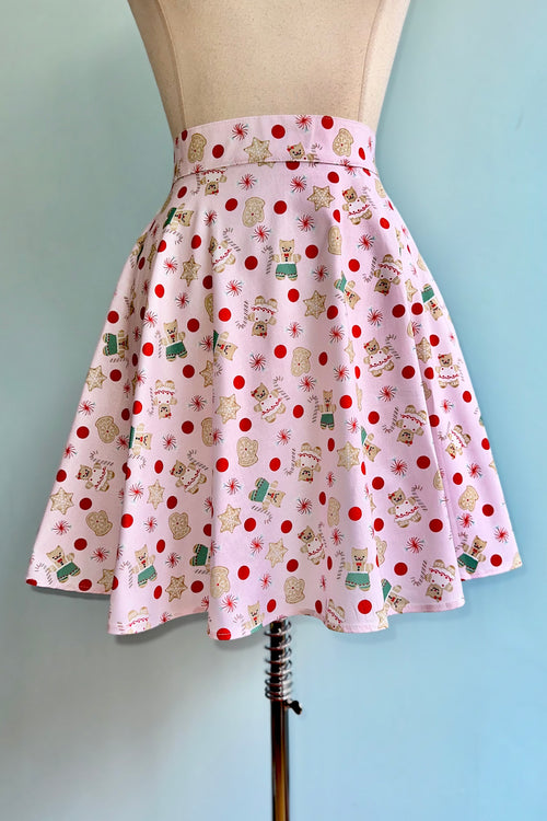 Pink Gingerbread Kitties Skater Skirt by Retrolicious