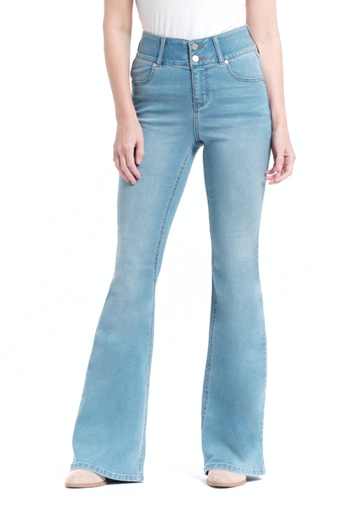 Petite 29" Shapewear Flare Leg Jeans in Light Wash by 1822 Denim