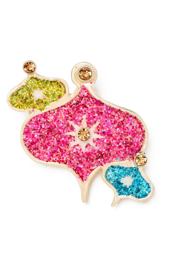 Get your glitter on with the Atomic Ornaments Brooch. A silver-plated enamel design featuring retro Christmas baubles, this piece adds vintage sparkle to your coat, cardigan or party dress.