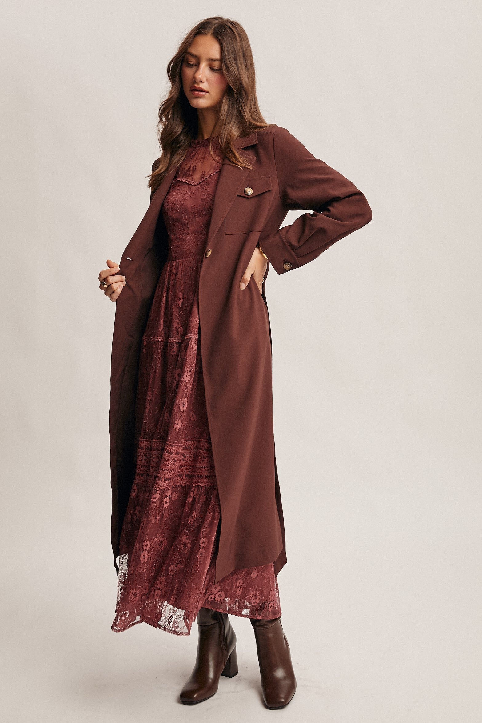 Belted Trench Coat in Chestnut