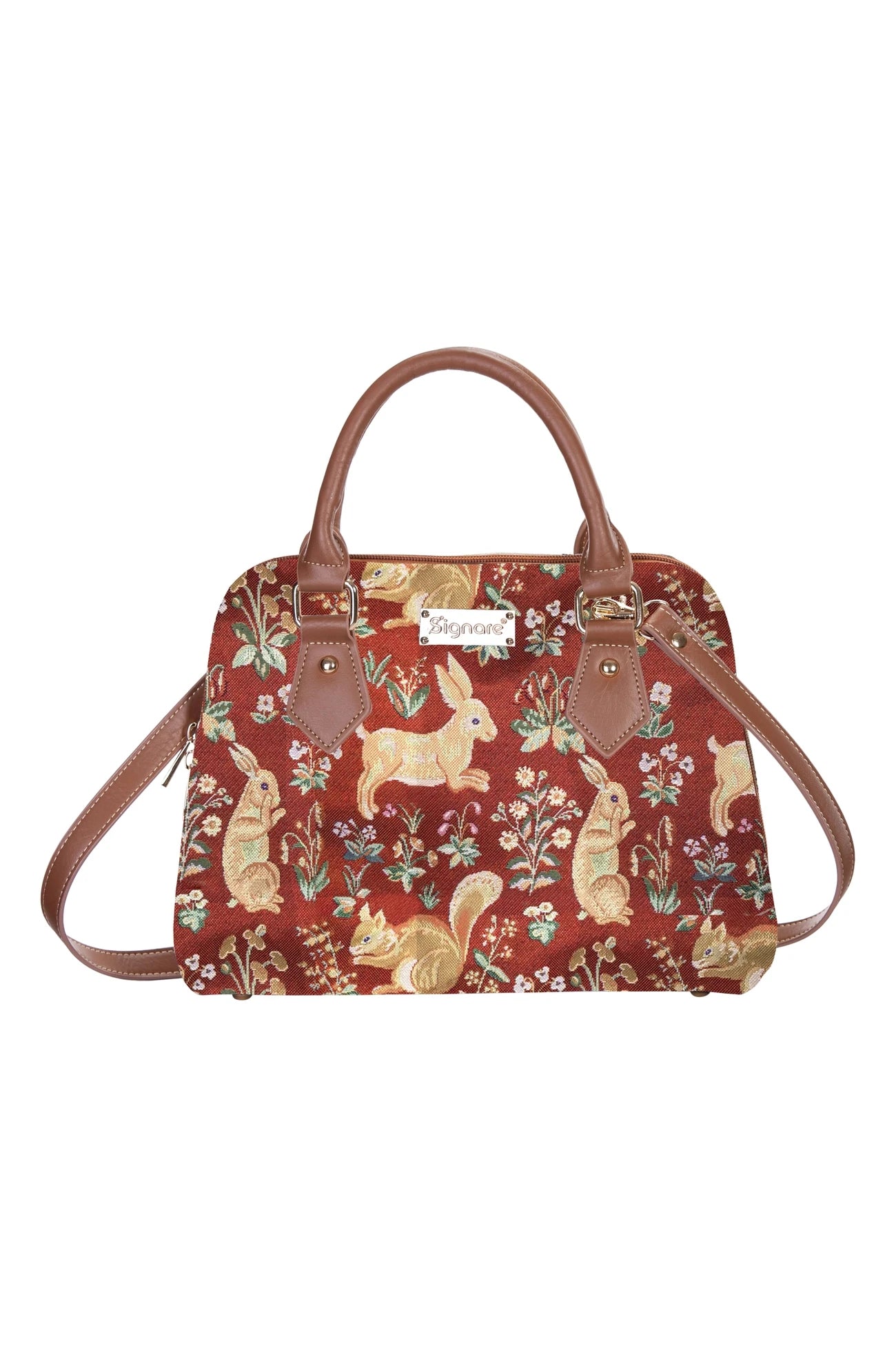 Forest Life Red Tapestry Satchel Bag