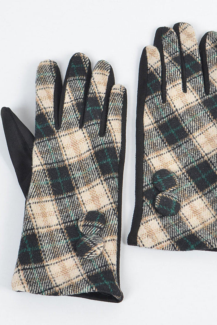 Plaid and smart touch gloves 60% polyester 40% cotton. The buttons are different colors!