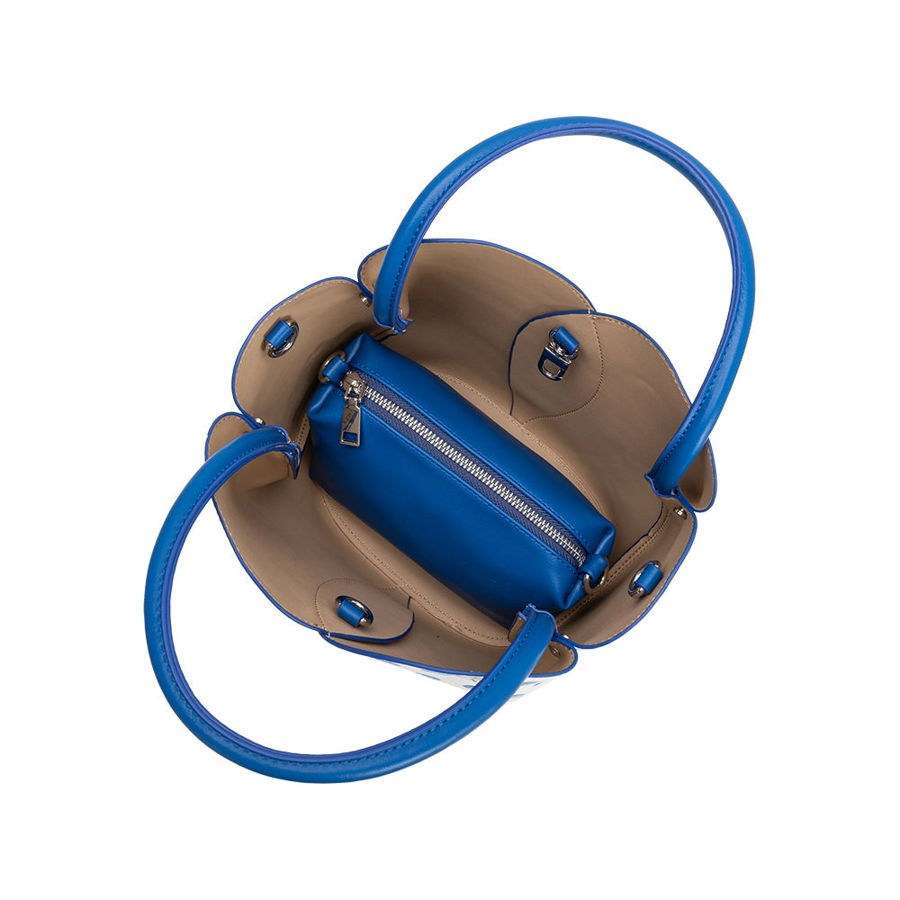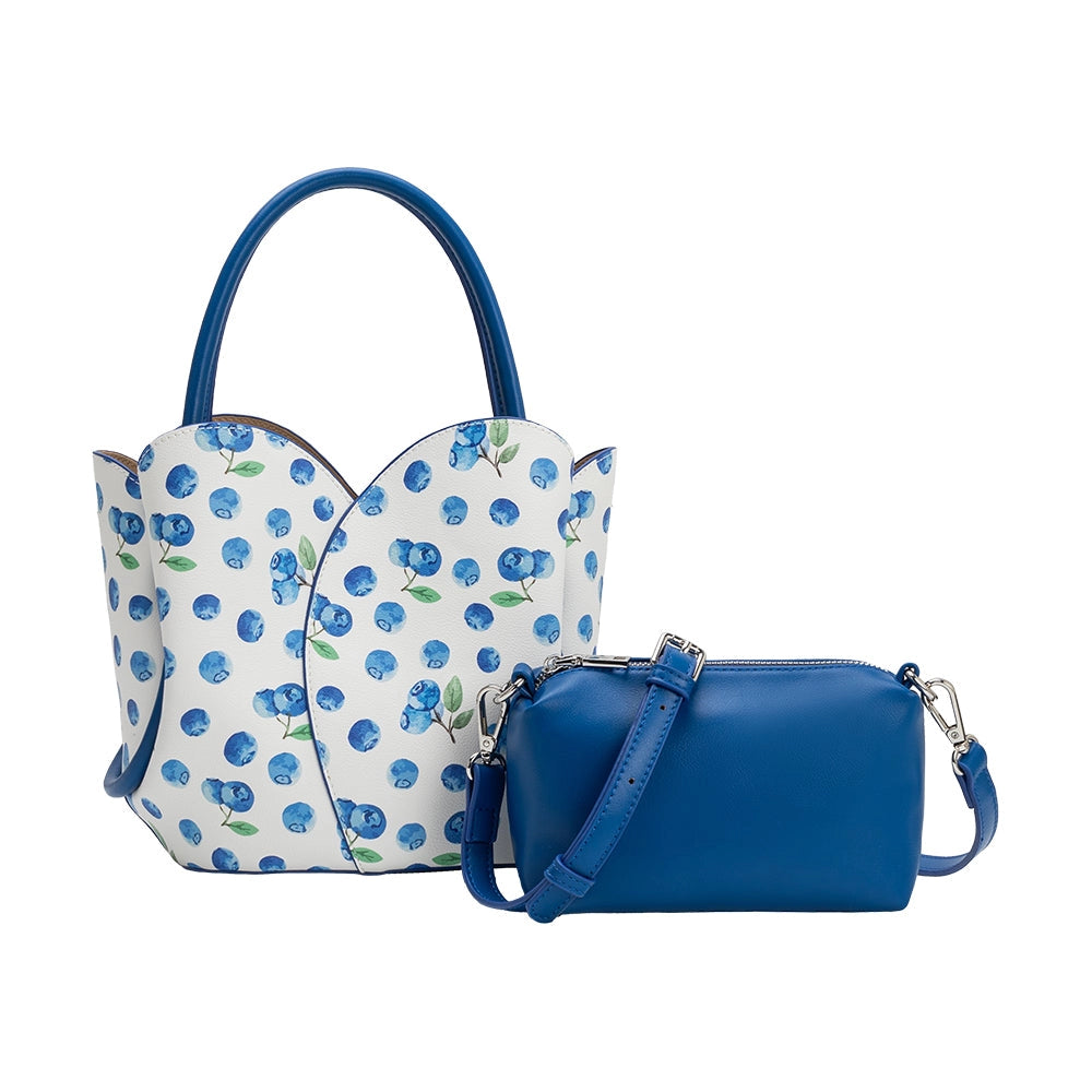 Reimagined with a playful cobalt blueberry print, our Tulip Bag brings charm and personality to its elegant tulip-inspired shape. Wear it top-handle or crossbody, and enjoy the added convenience of a removable zip pouch with a detachable strap.