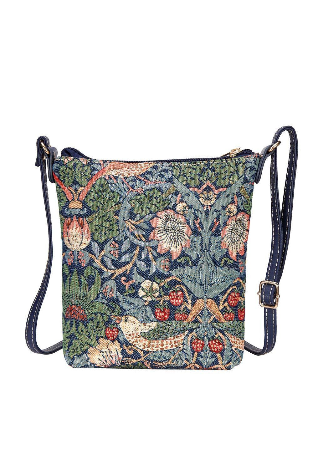 William Morris Strawberry Thief Sling Bag in Blue Tapestry