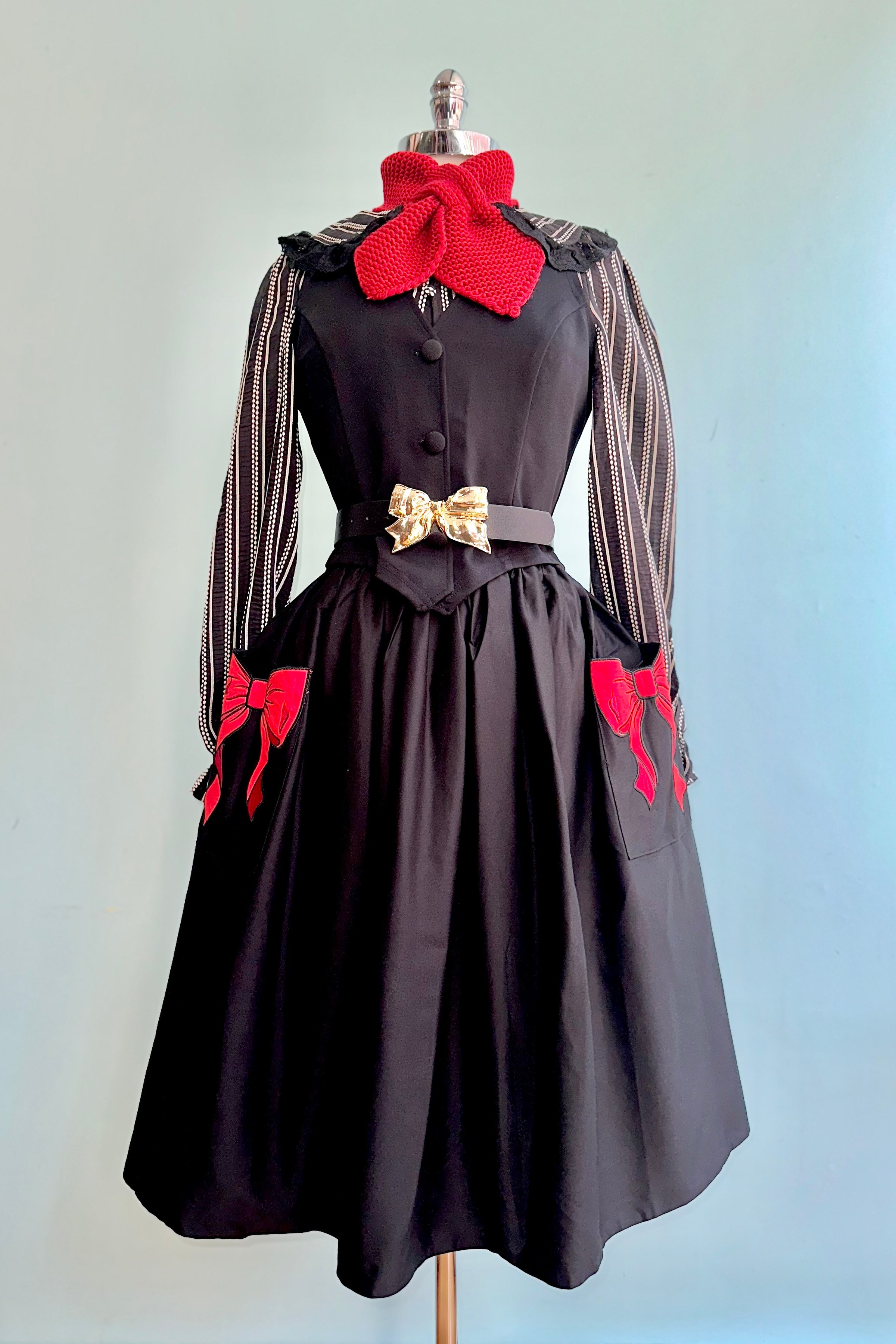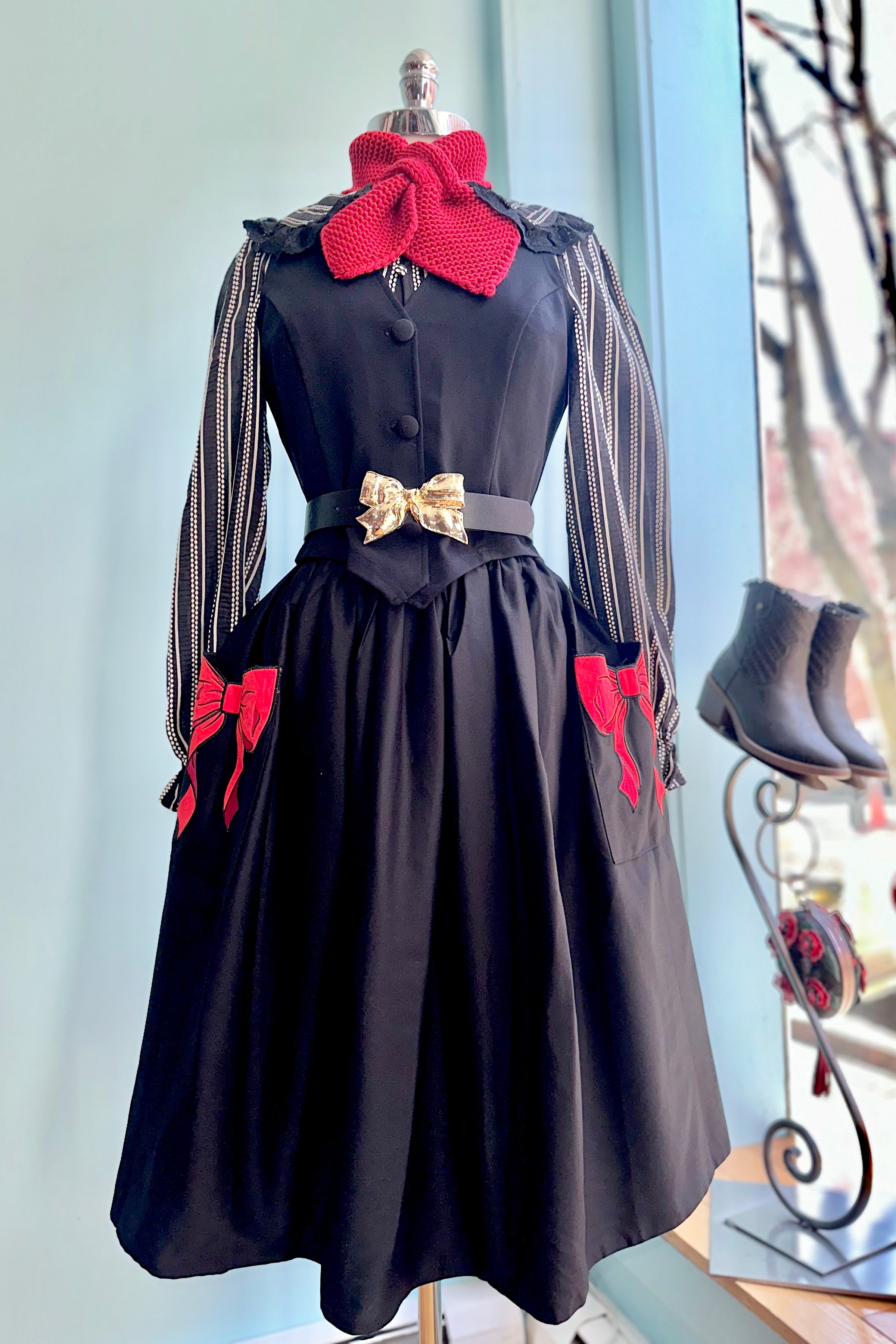 Cotton gathered skirt with bow pockets. This skirt has a back zip and button closure. The fabric has a small amount of ease.