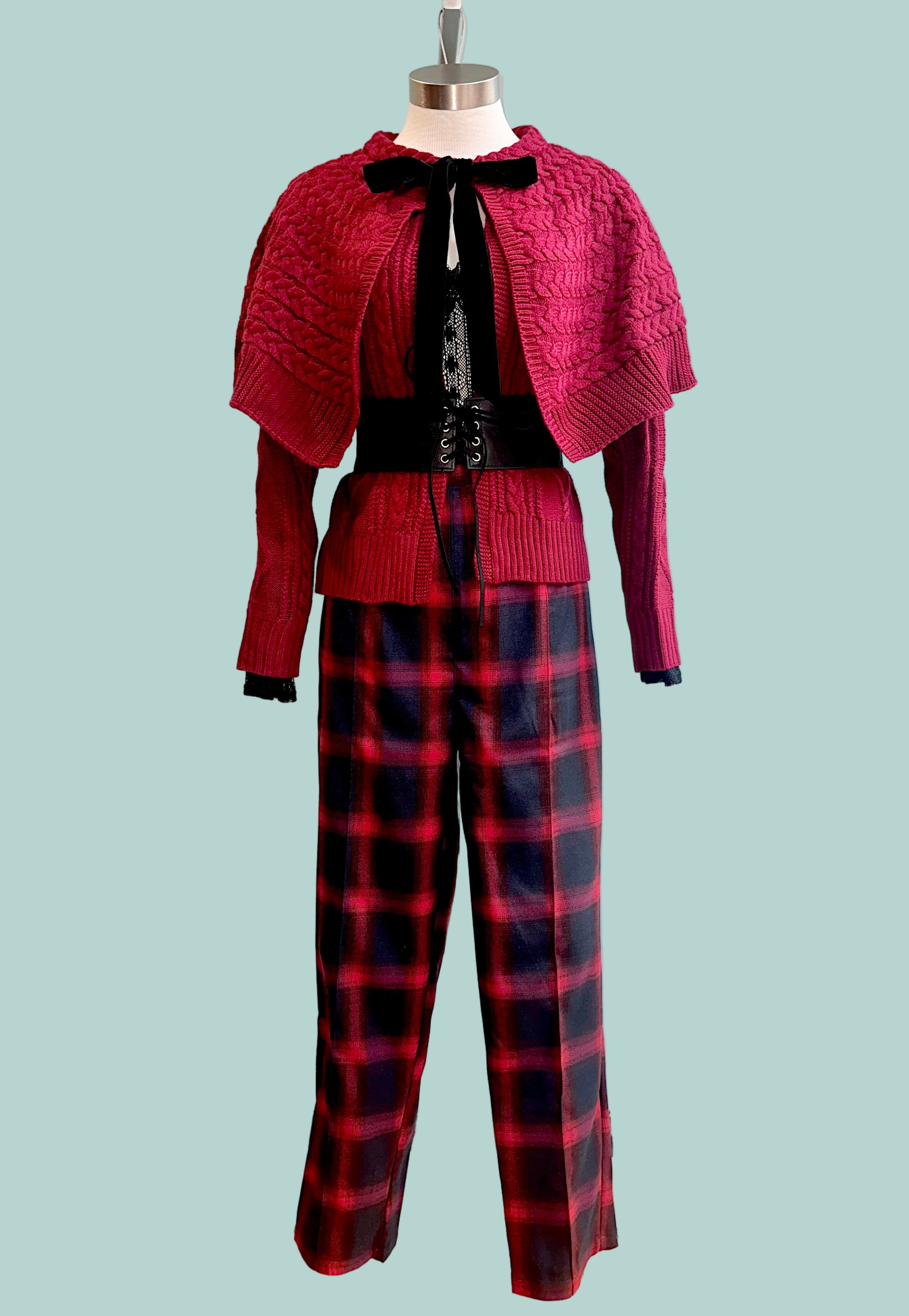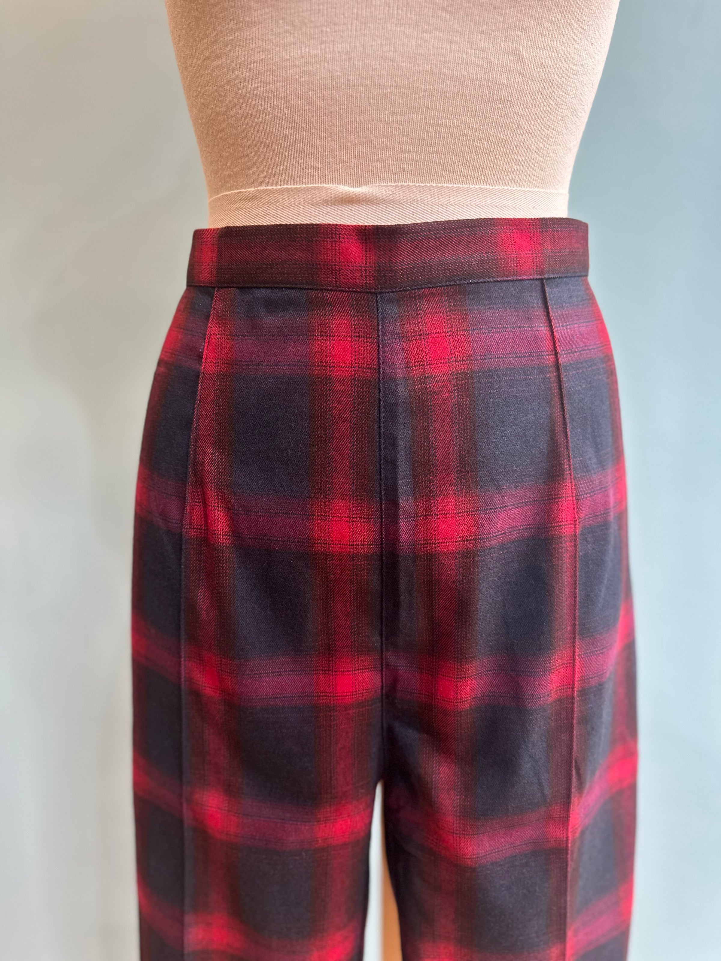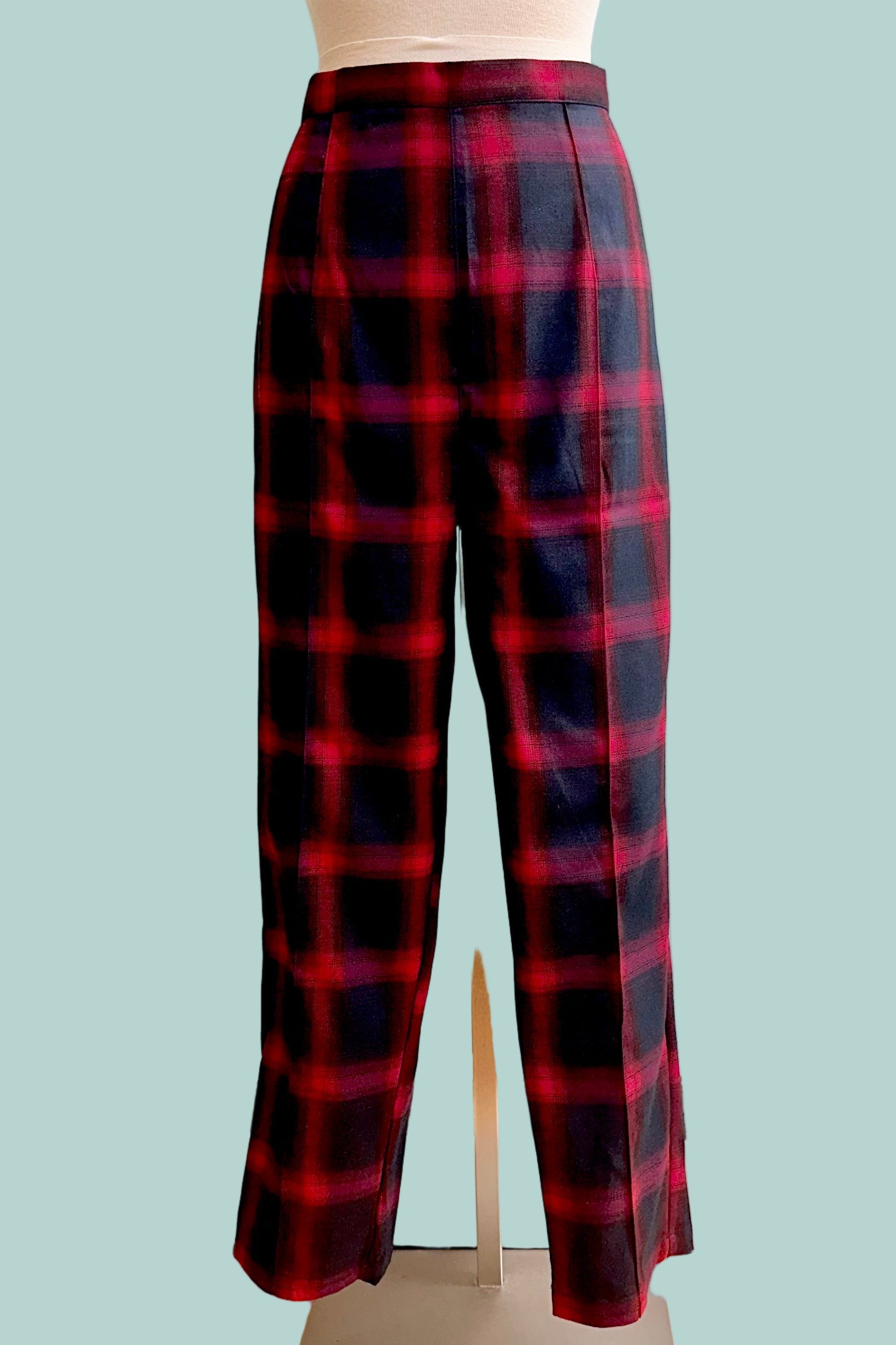 Navy and red tapered pants with a side zip closure. These are made of a midweight woven fabric. Pair these with our matching Simona Blazer or Carla Sweater.