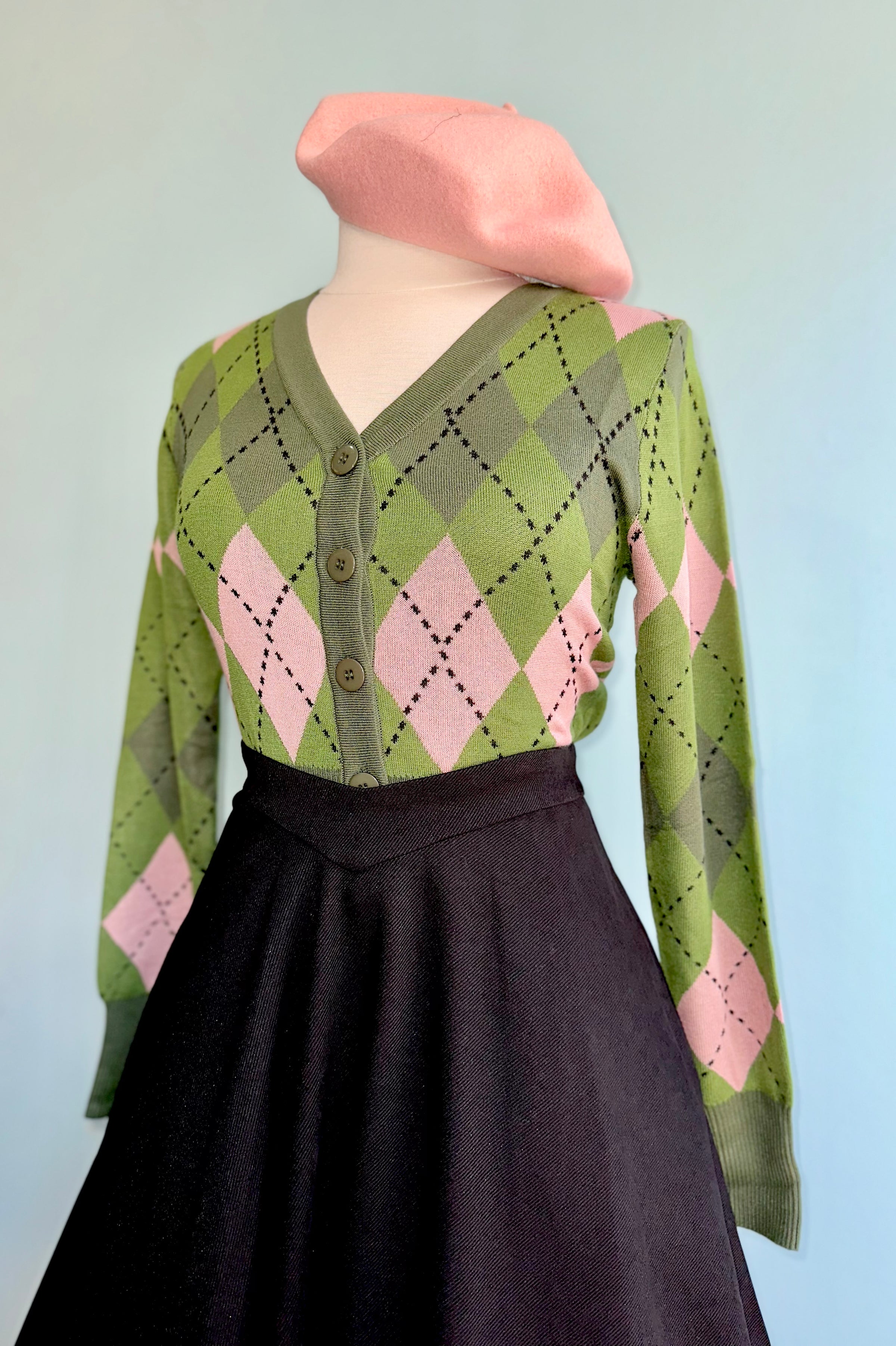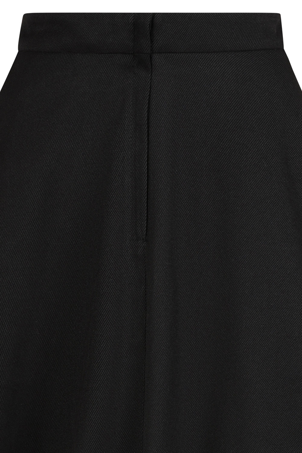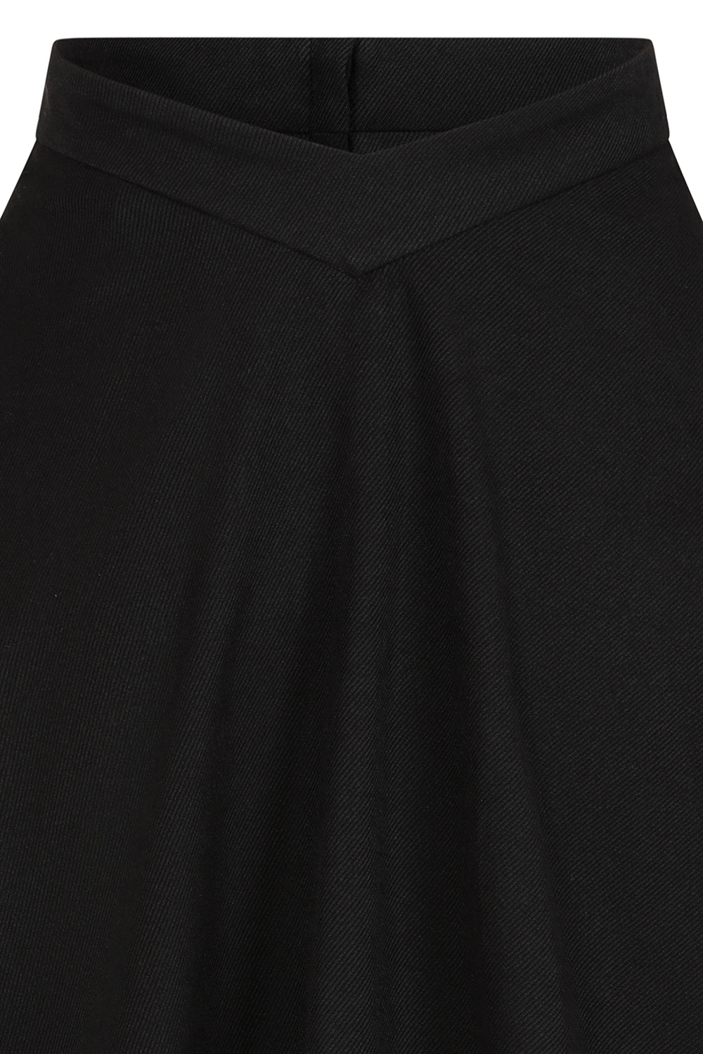Black skirt with an inset V at the center. This skirt has a back zip closure