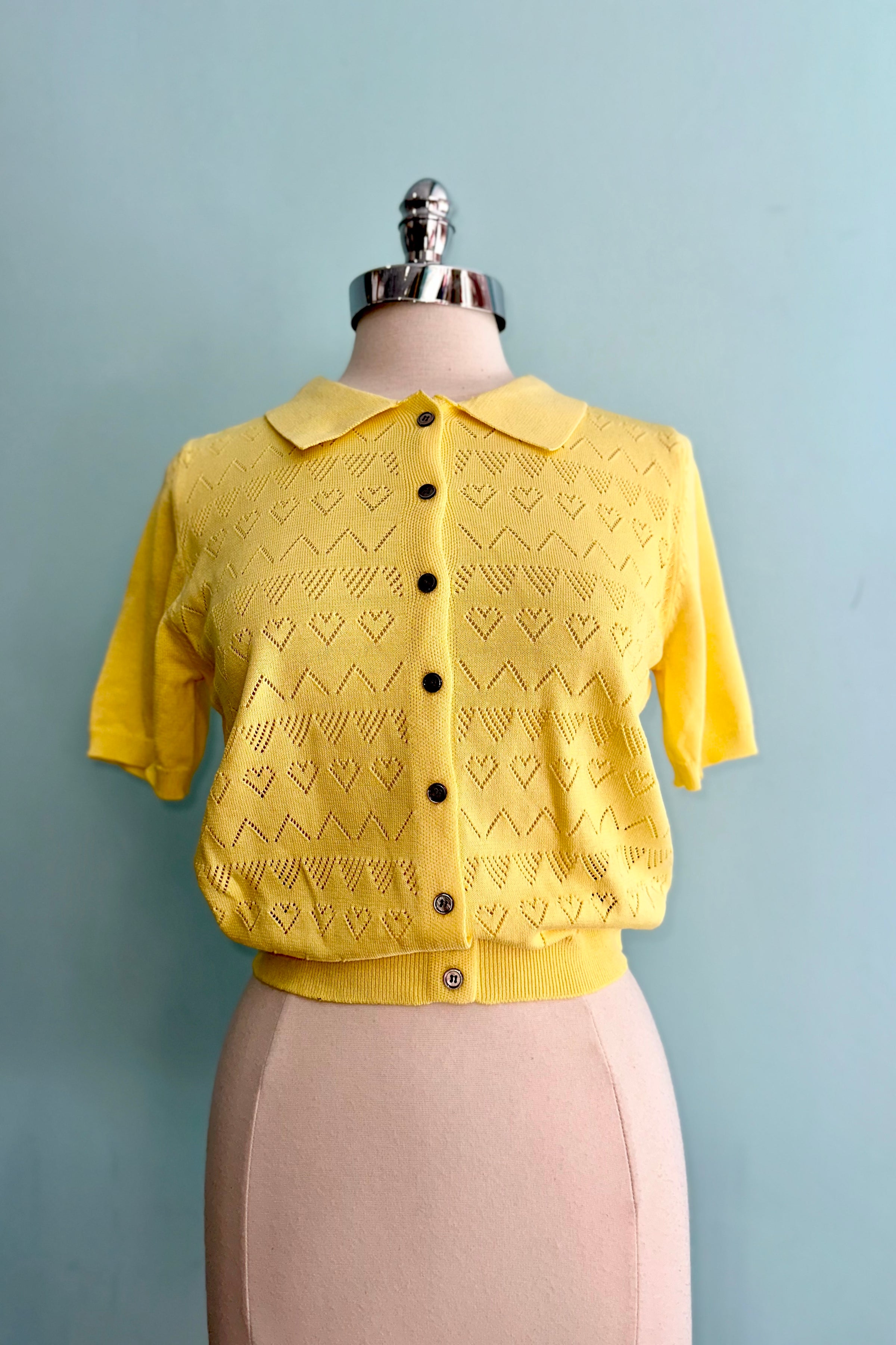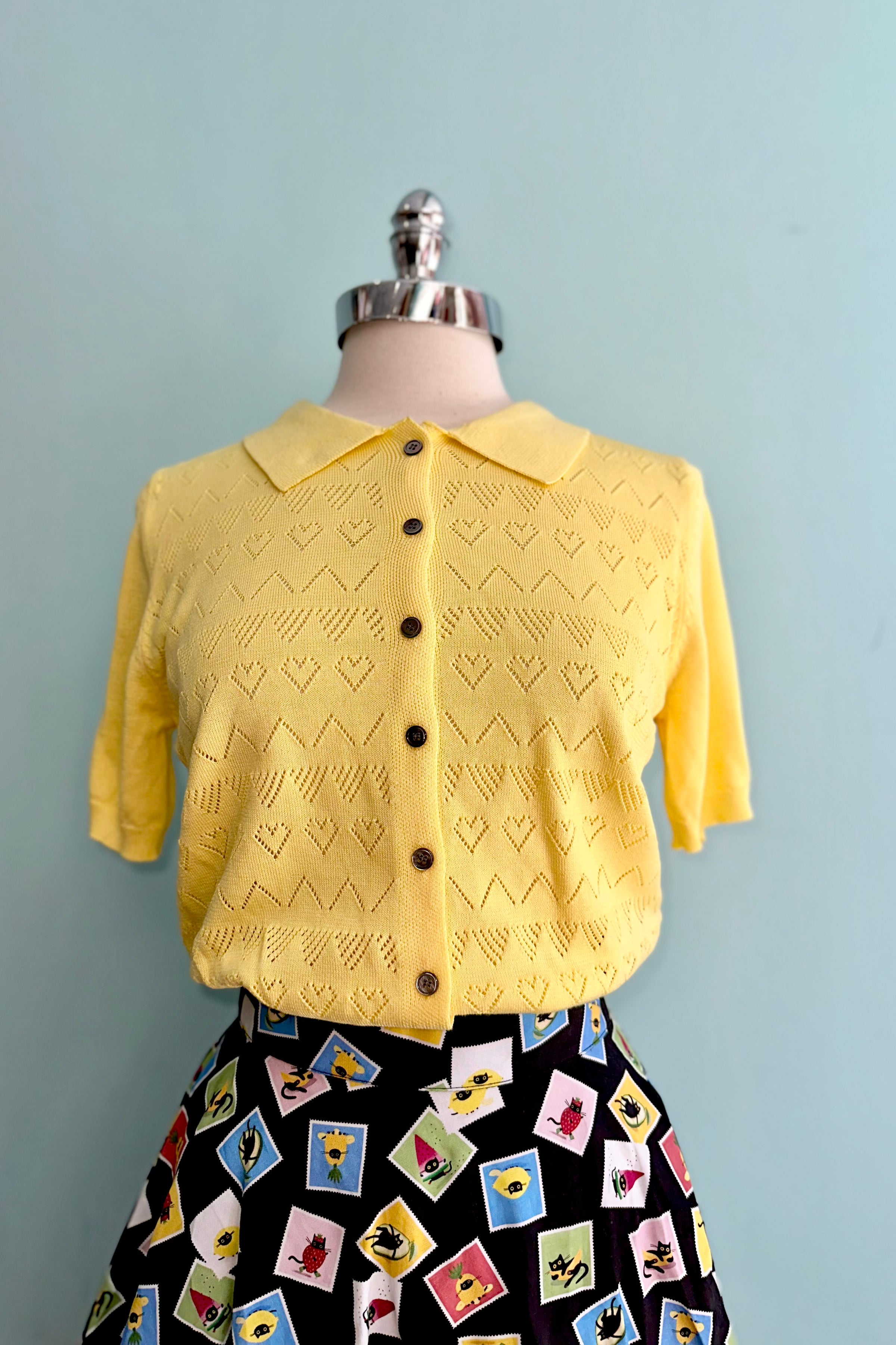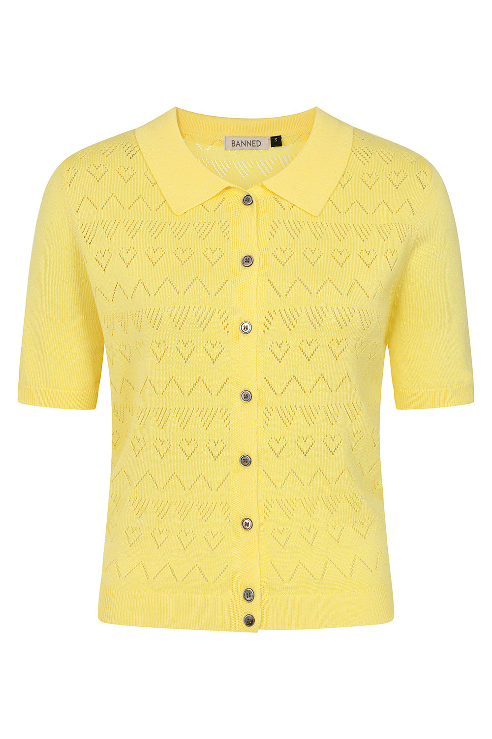 Collared Short Sleeve Heart Waves Cardigan in Yellow by Banned