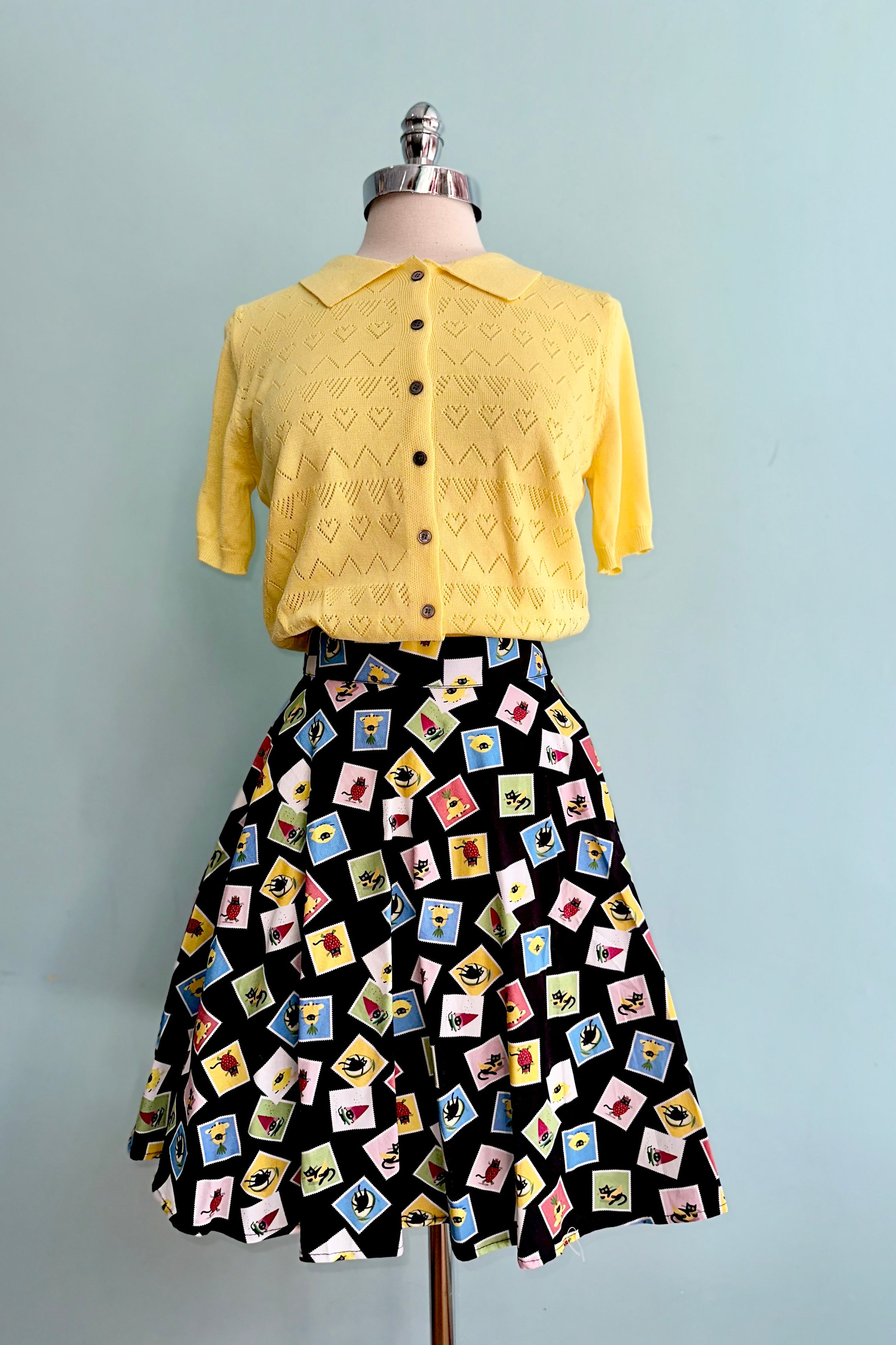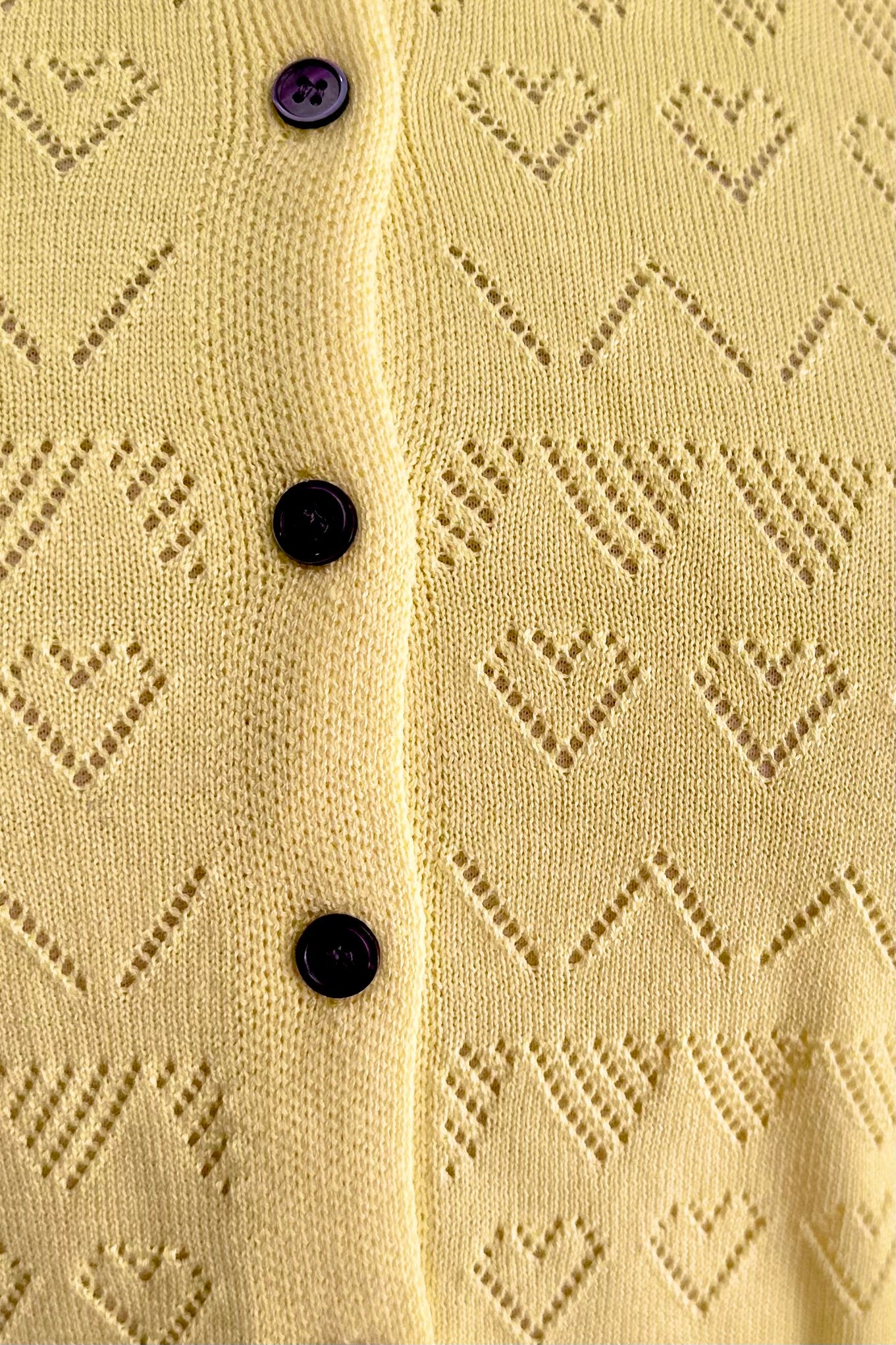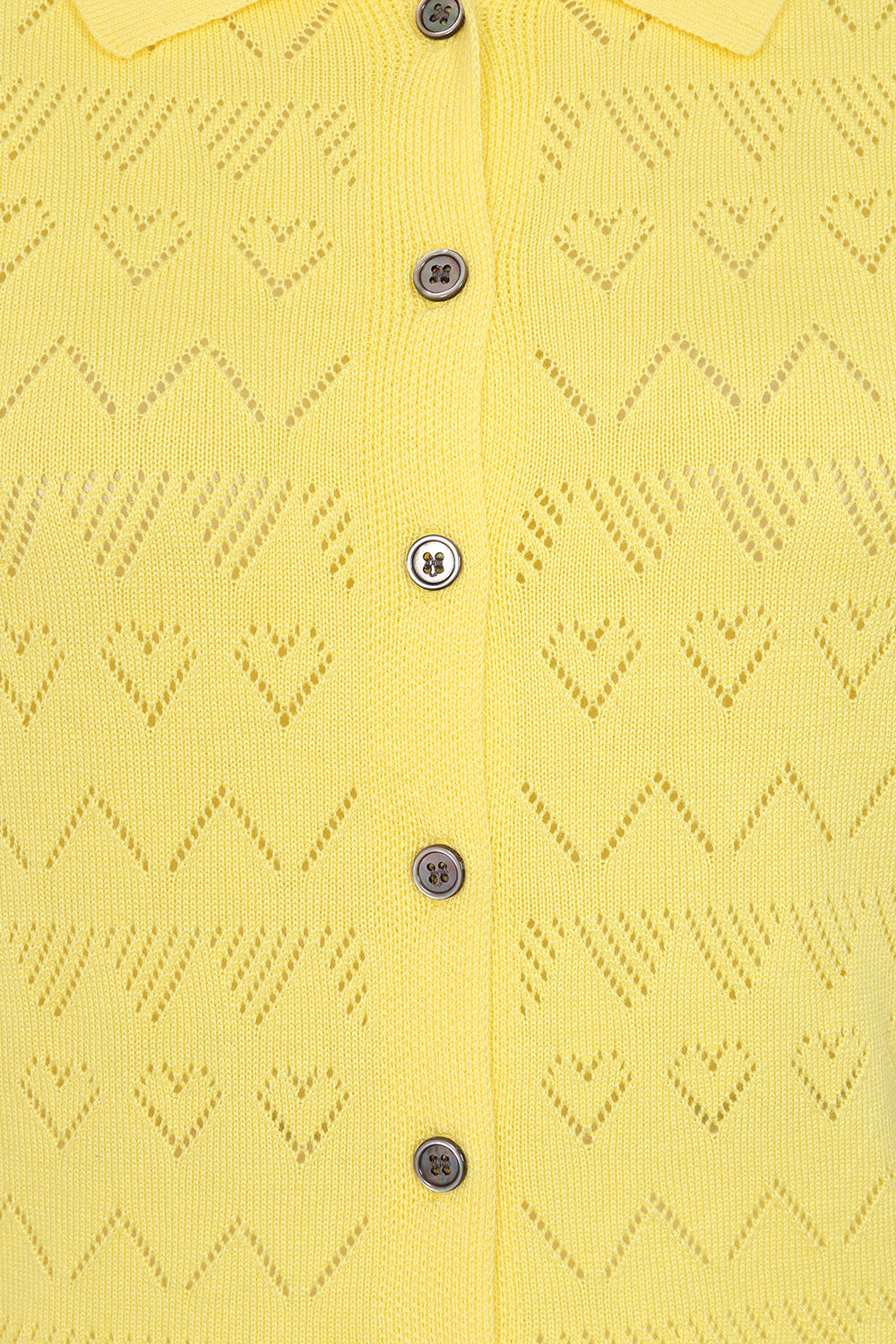 Collared Short Sleeve Heart Waves Cardigan in Yellow by Banned