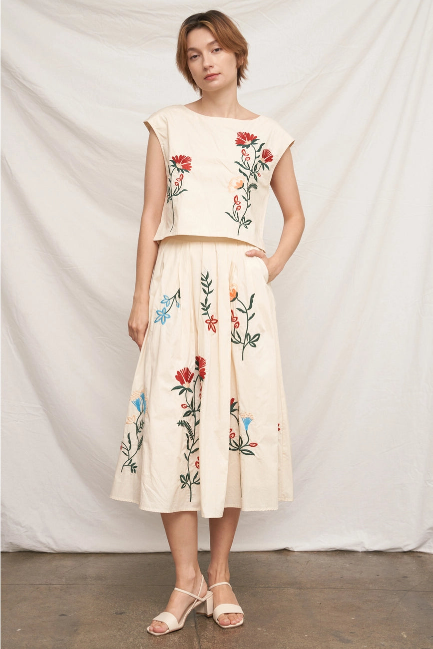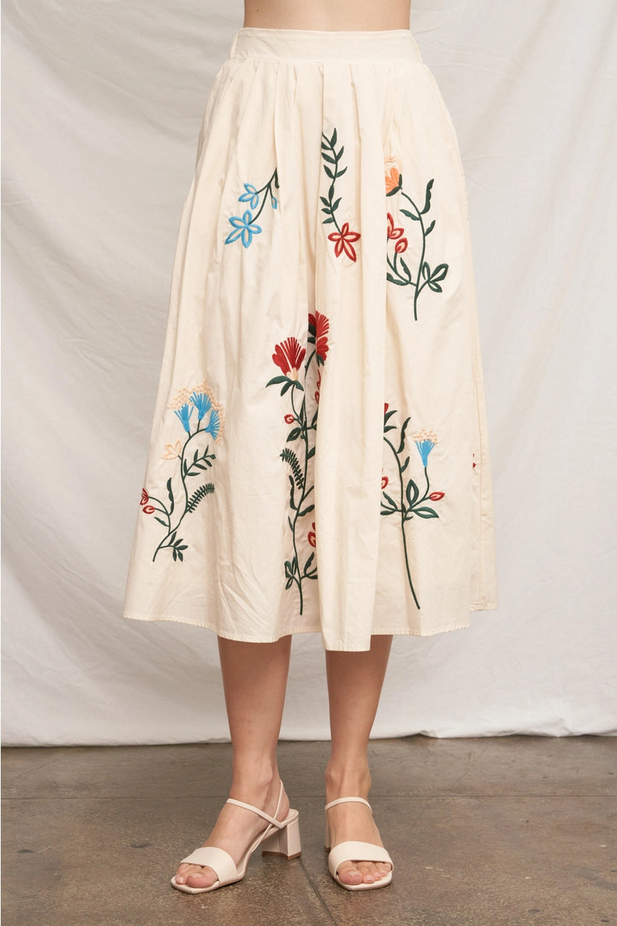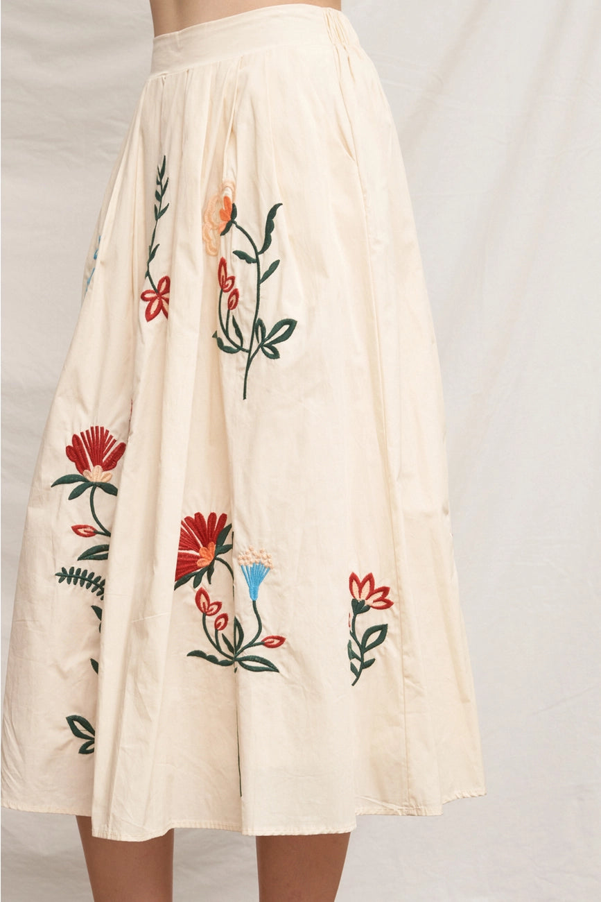 Embroidered Floral Skirt in Cream