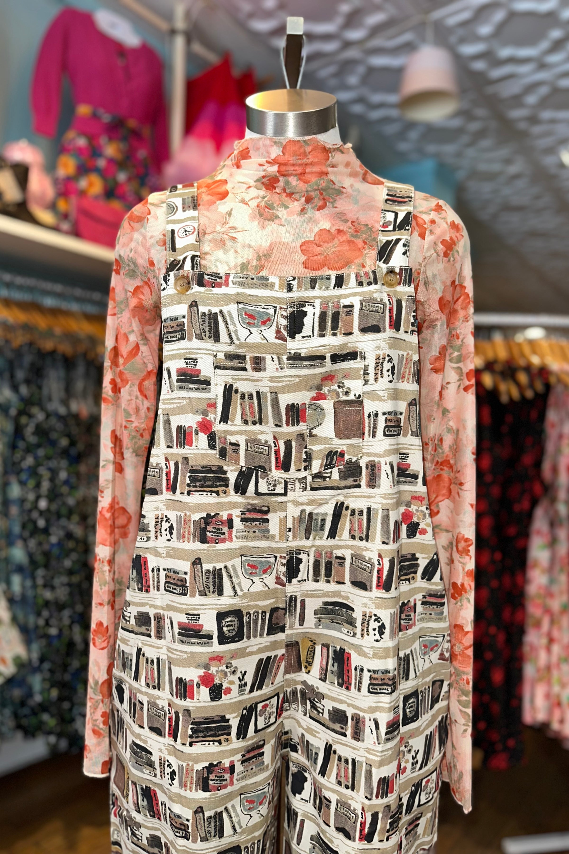 These overalls have a bob front, side and back pockets and an ankle length leg. The straps fasten with buttons and are adjustable.
