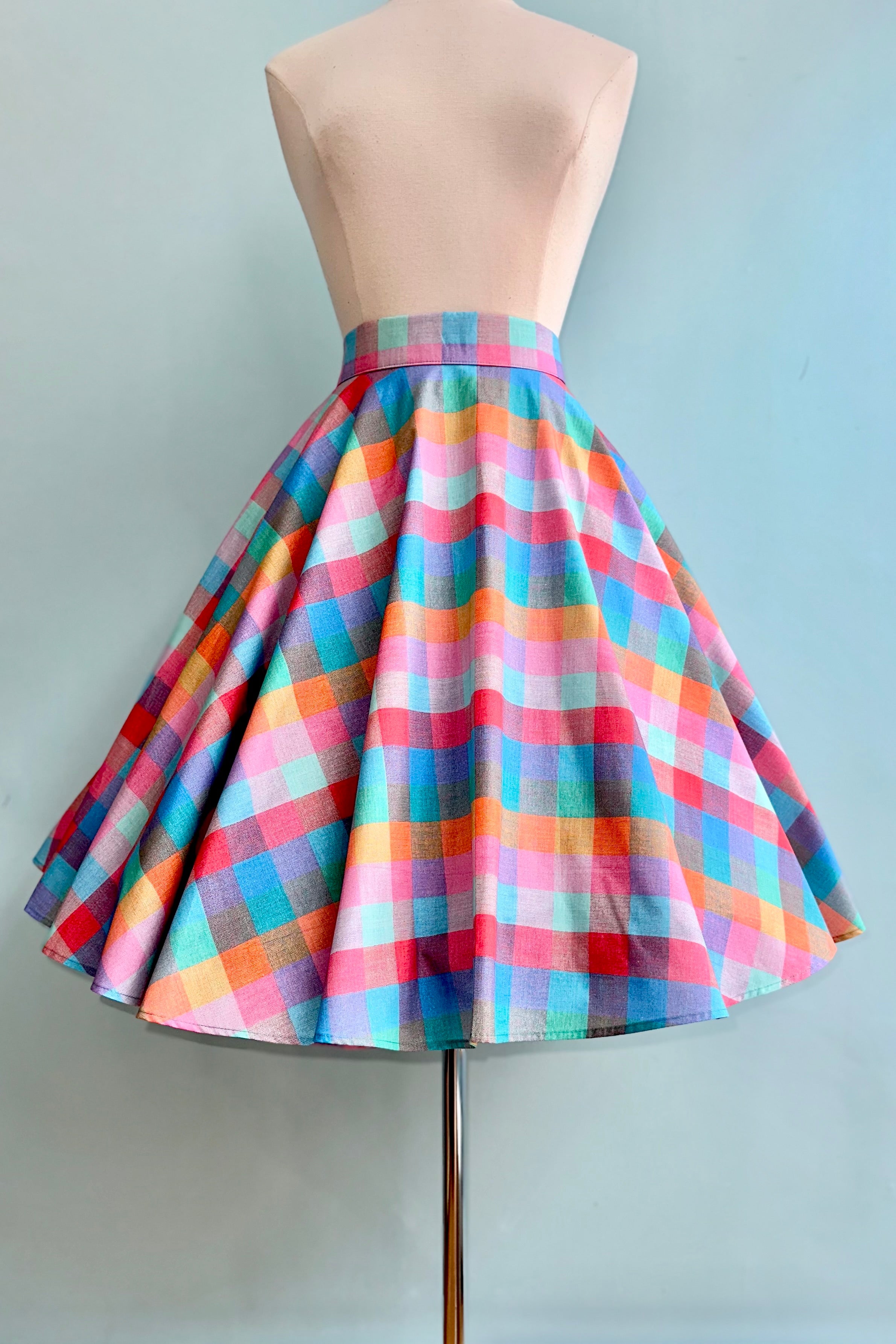 Rainbow Sherbet Plaid Circle Skirt by Heart of Haute