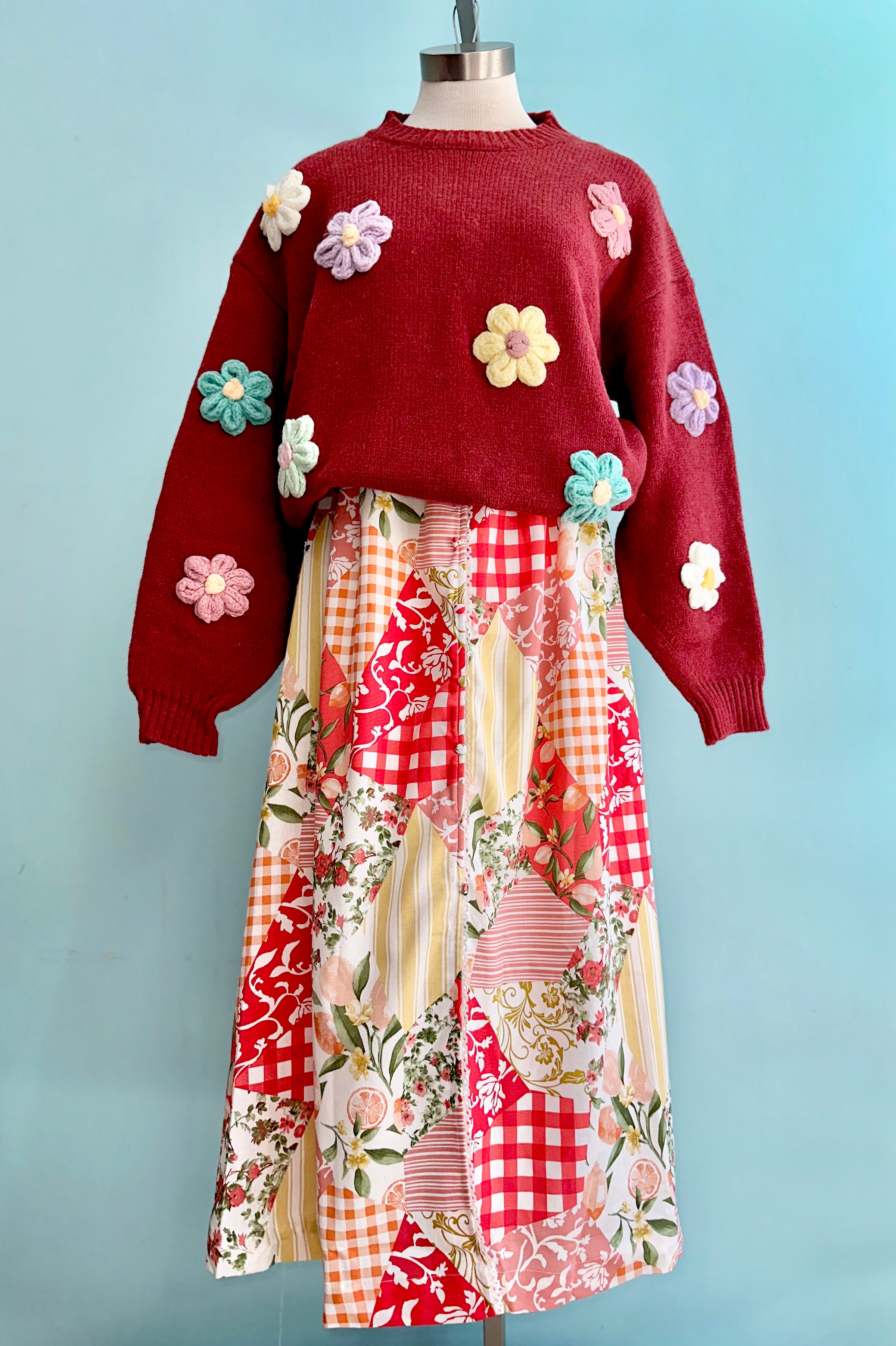 Red Patchwork Midi Dress