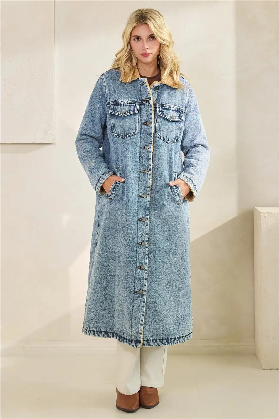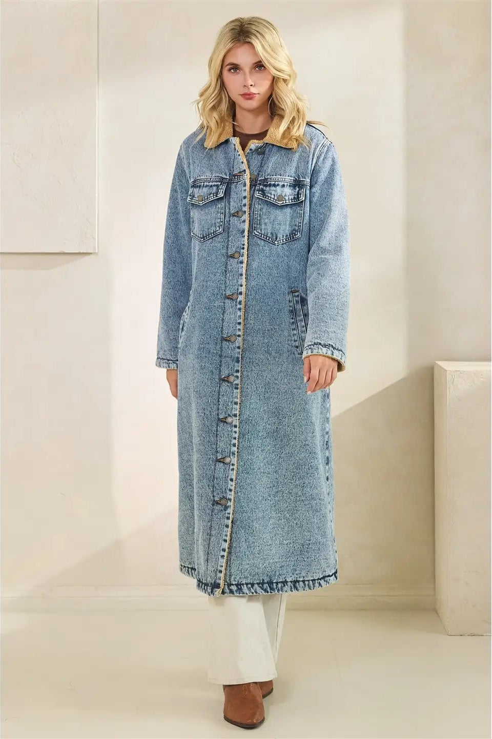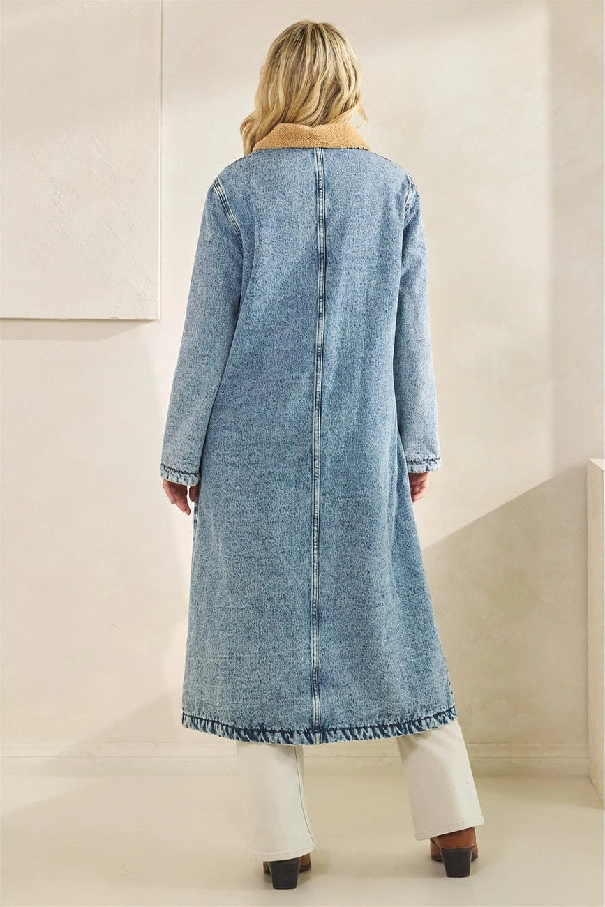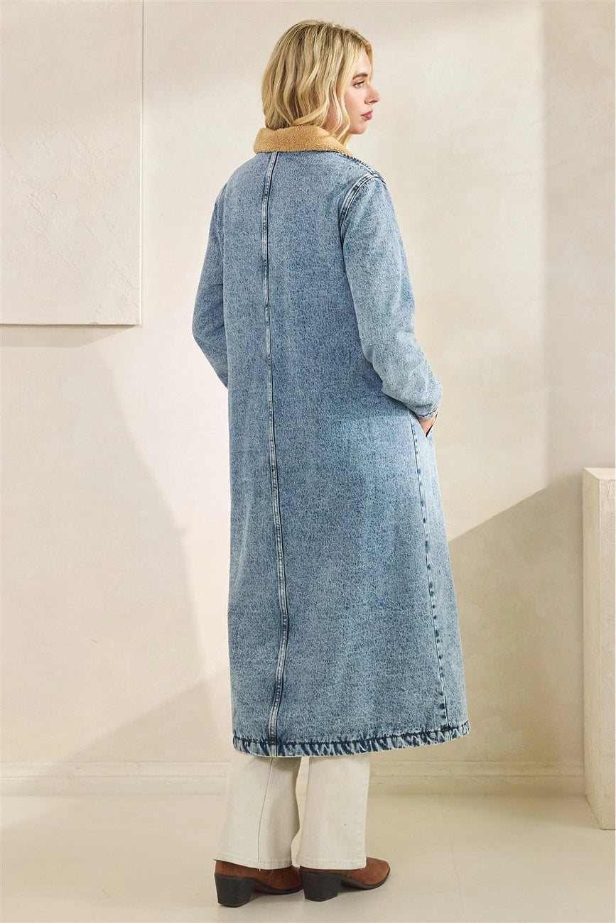 Teddy Lined Denim Long Coat