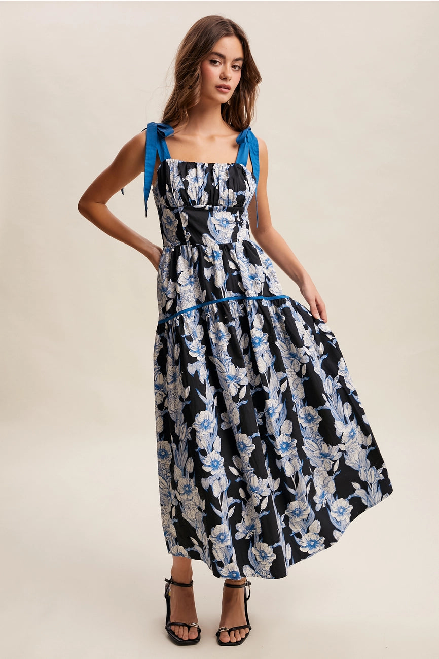 Black Floral Tie- Shoulder Maxi Dress