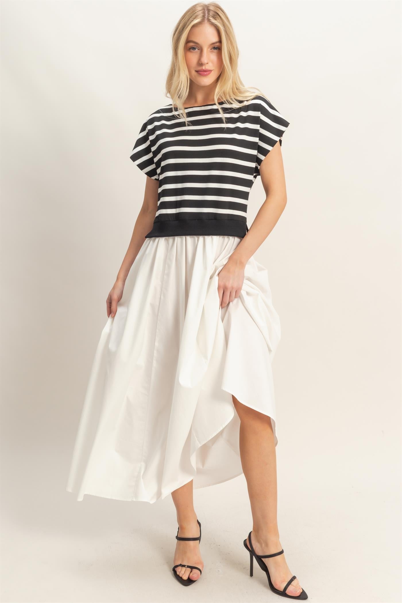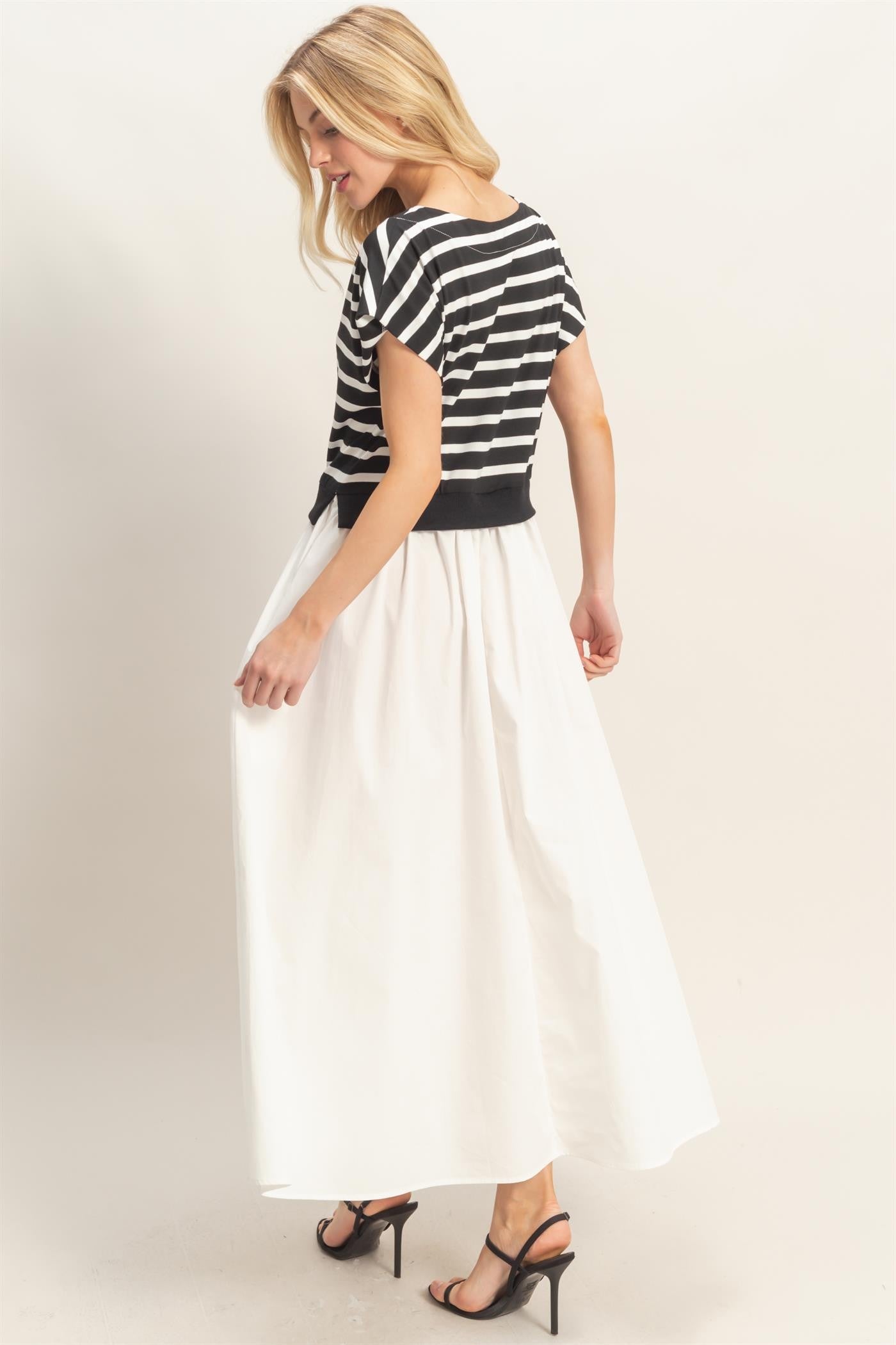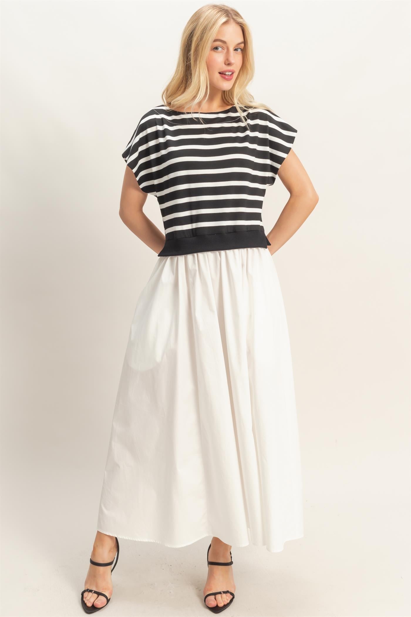 Black Striped Bodice Midi Dress