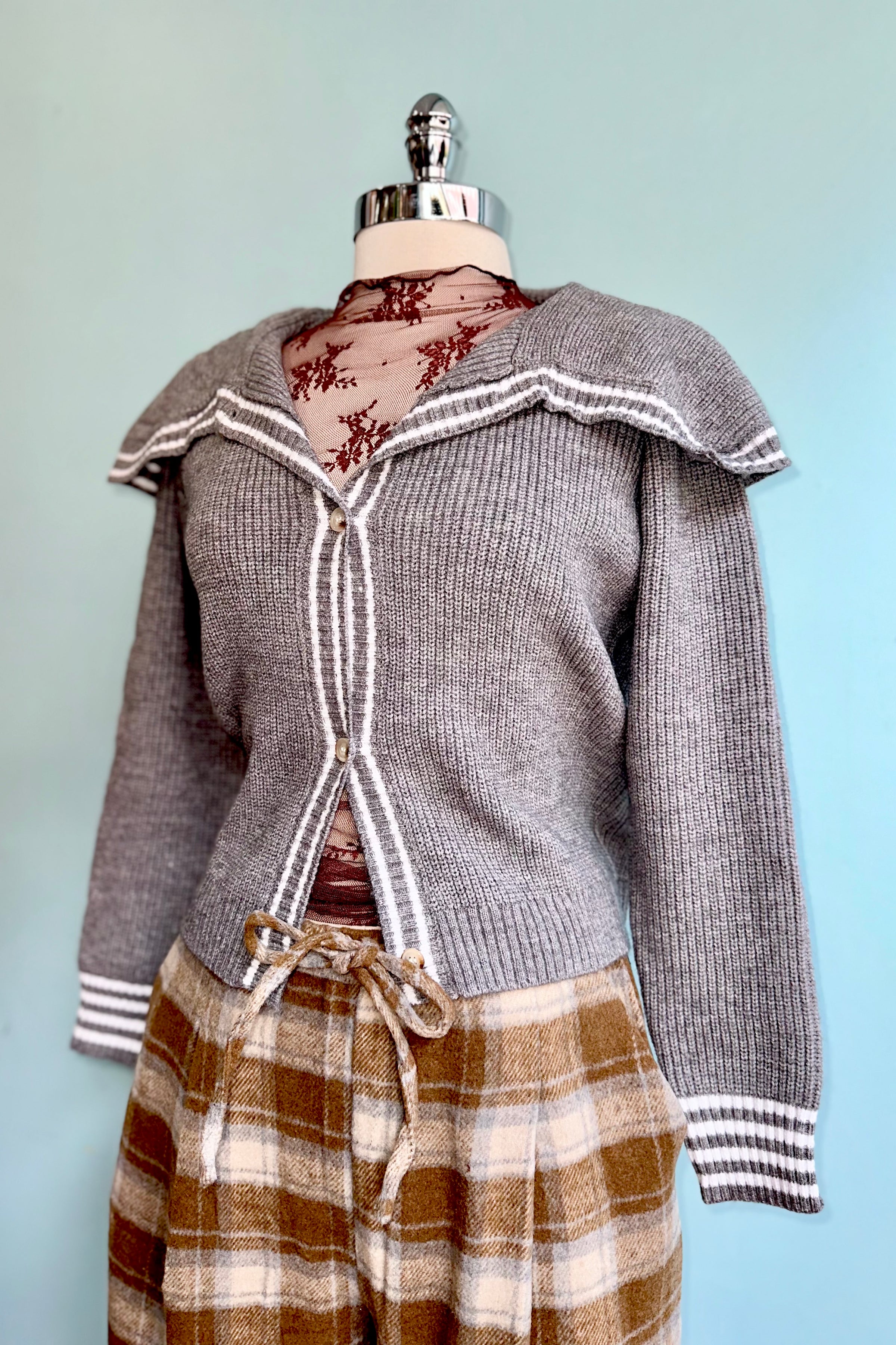 Grey Sailor Collar Cardigan Sweater by Compania Fantastica