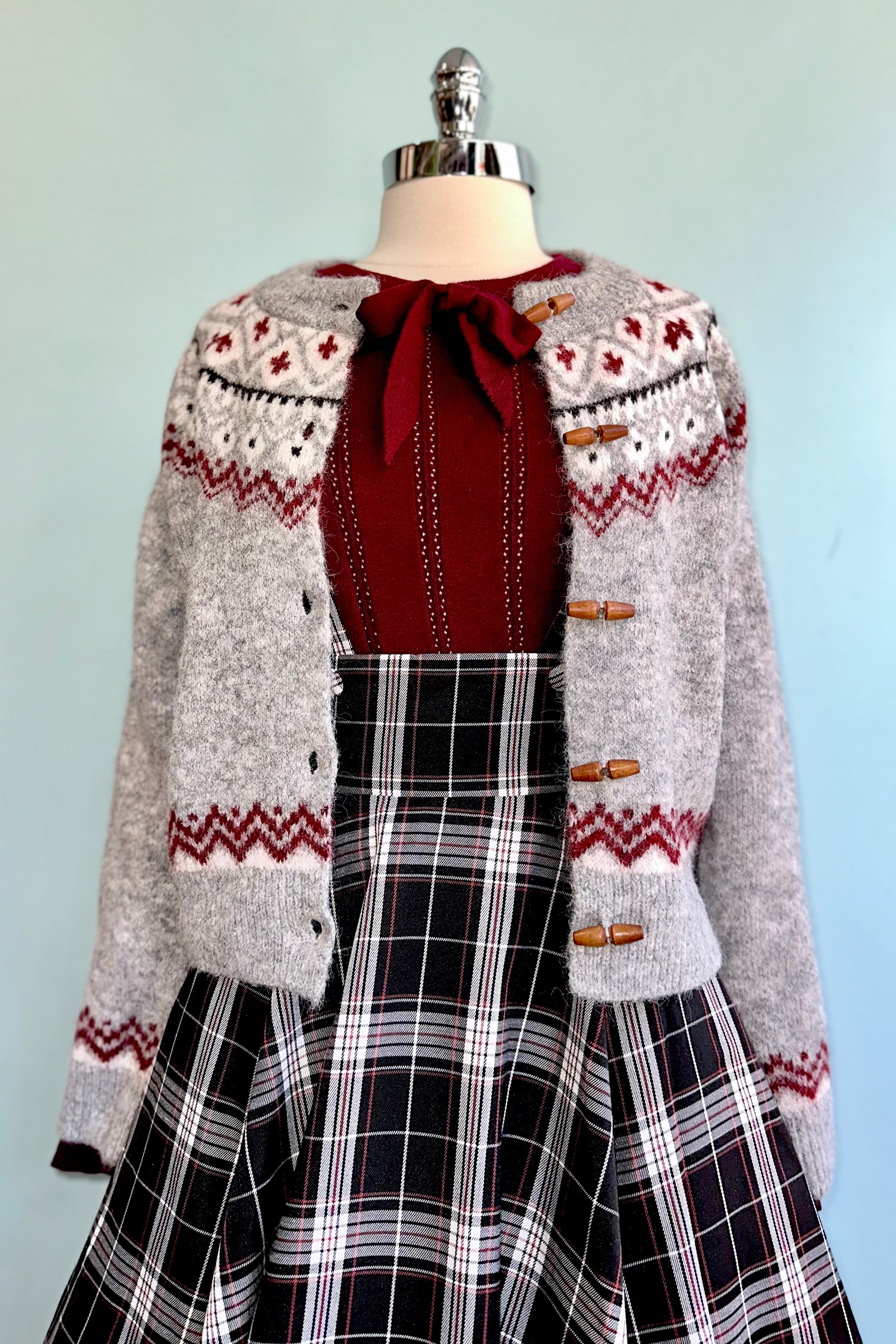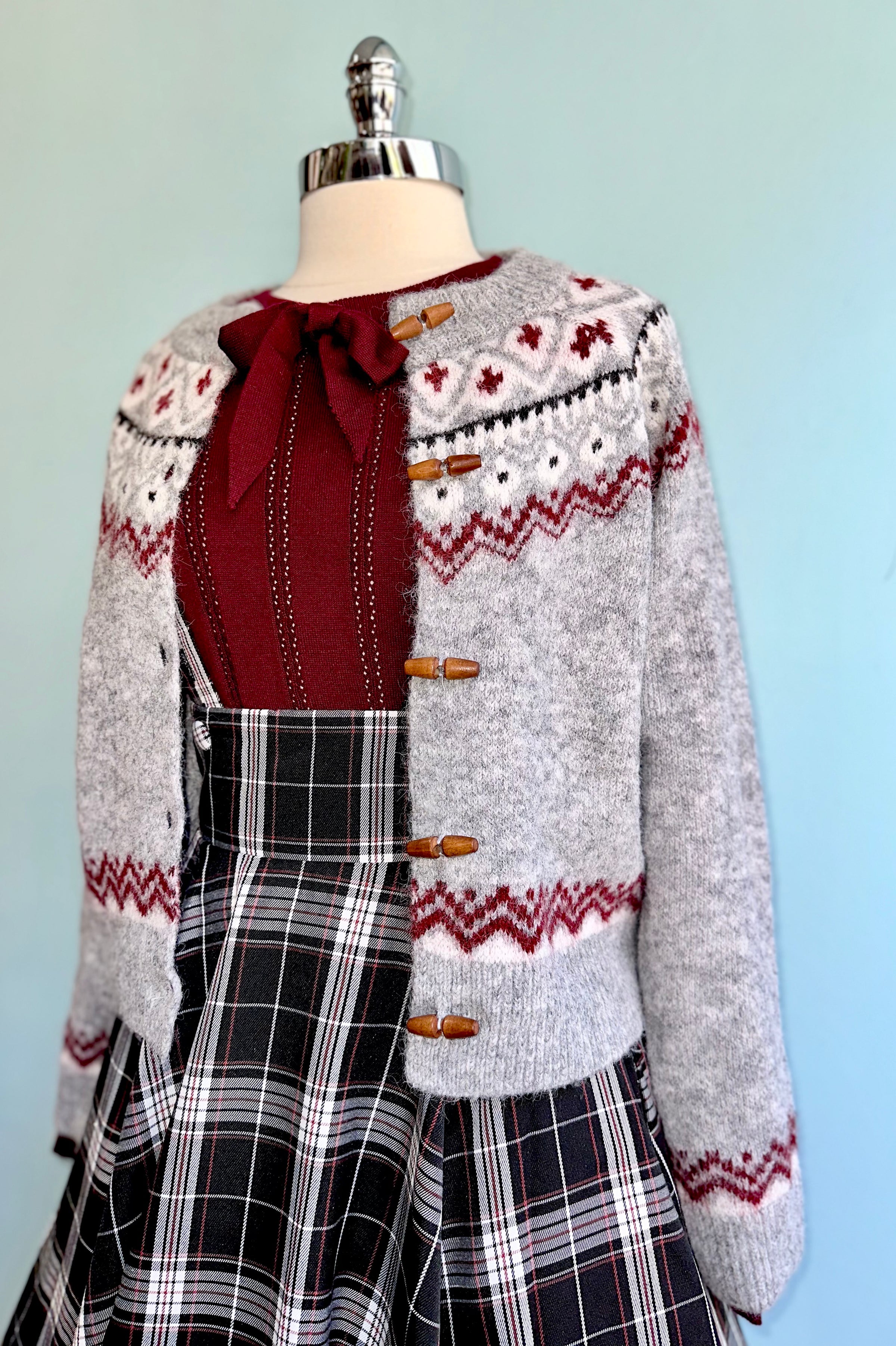 Fair isle sweater with z rounded neckline, long sleeves and a button front of toggle buttons
