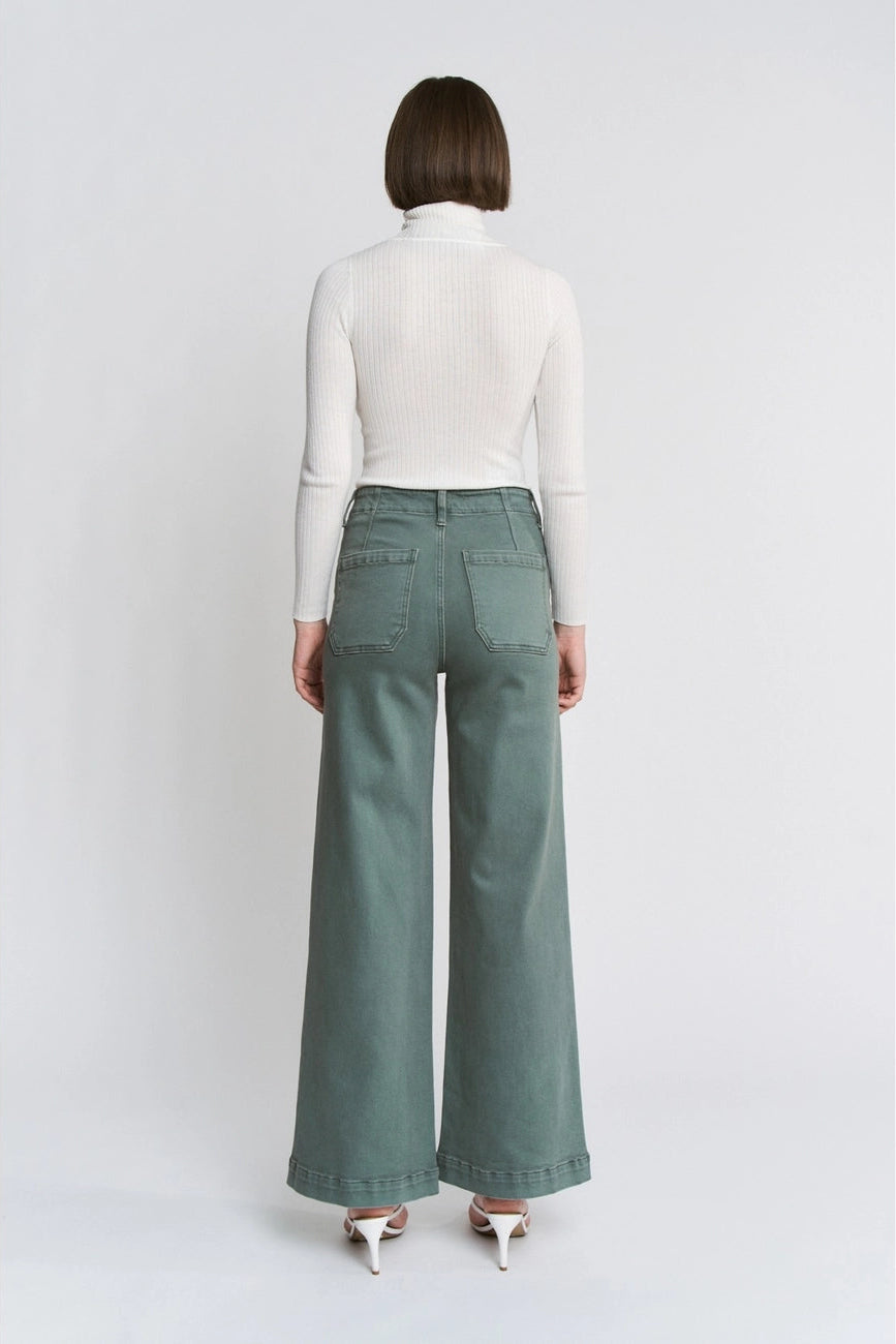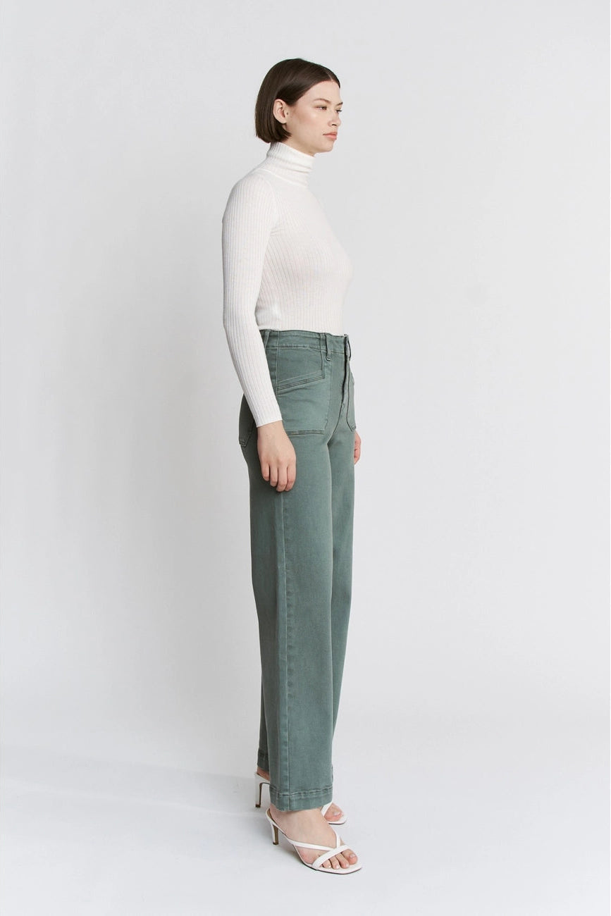 High Waisted Twill Pants in Cilantro by Mica Denim