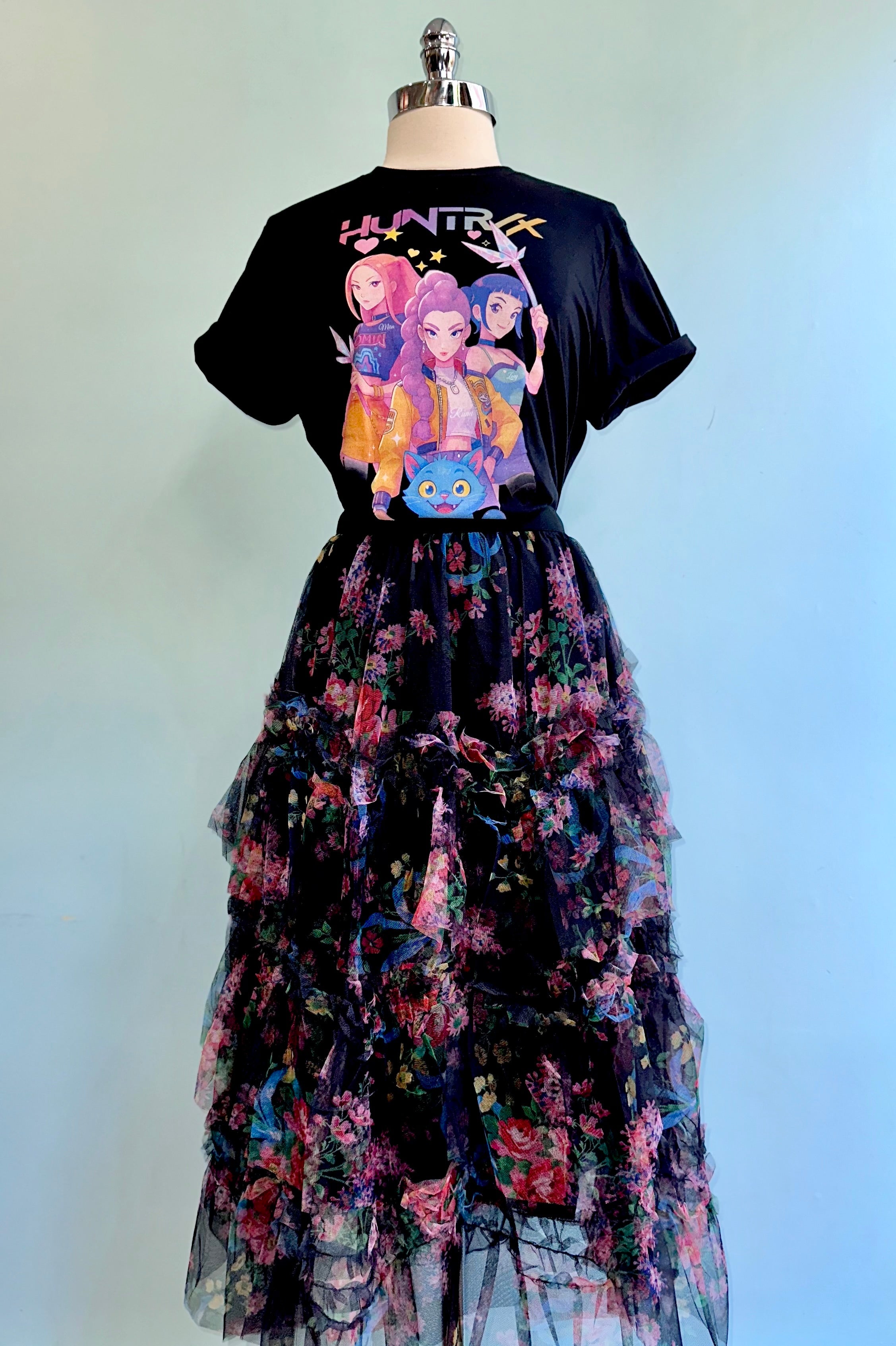 Black Huntrix K-Pop Demon Hunters T-shirt! Unisex sizing and made of 100% Cotton.