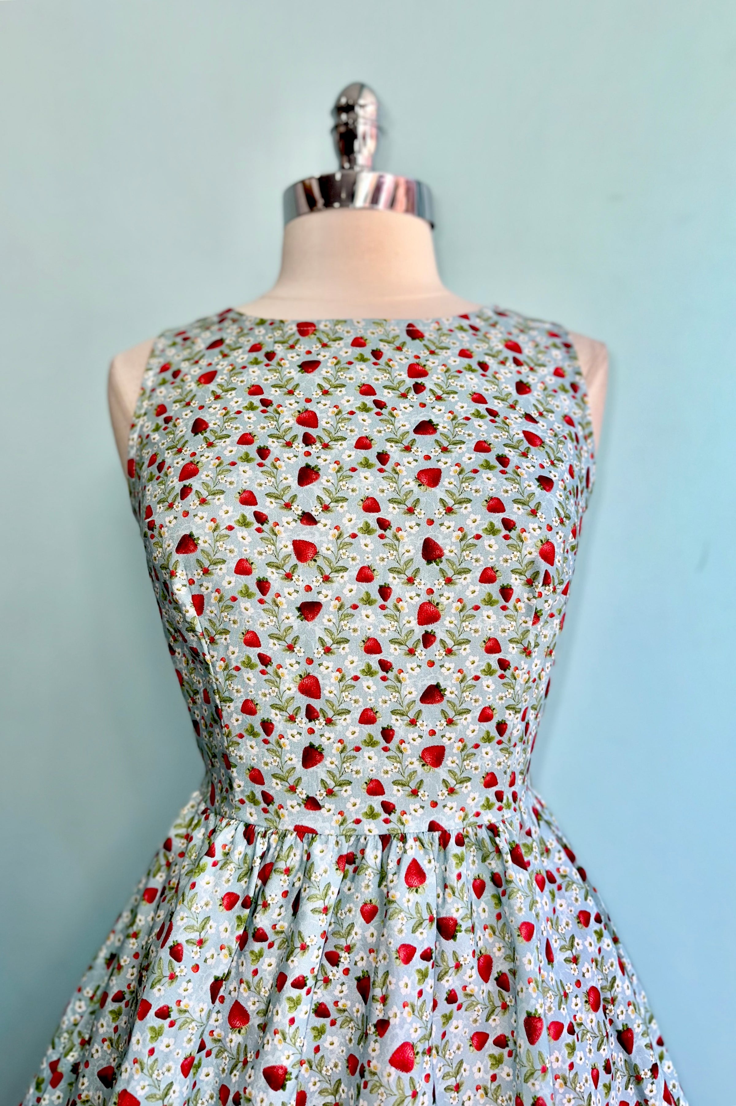 Strawberry Midi Dress in Blue by Retrolicious