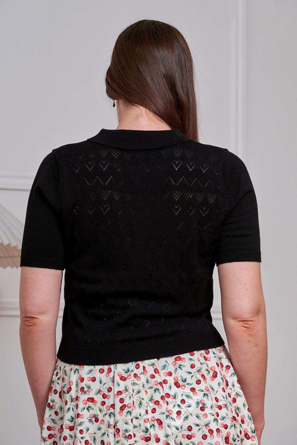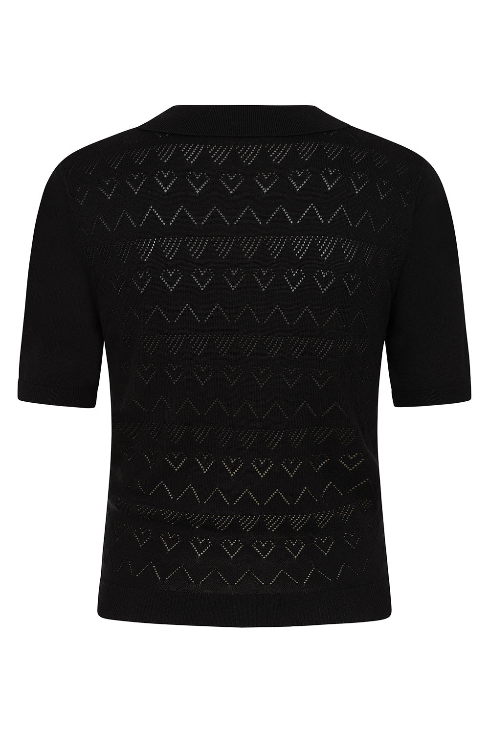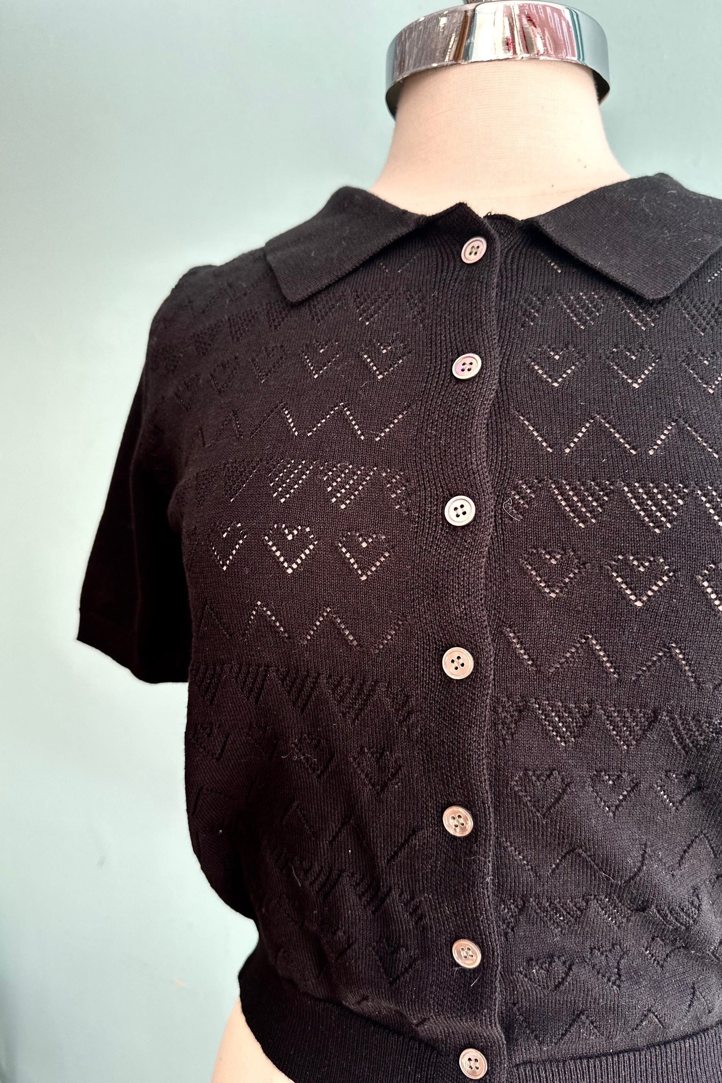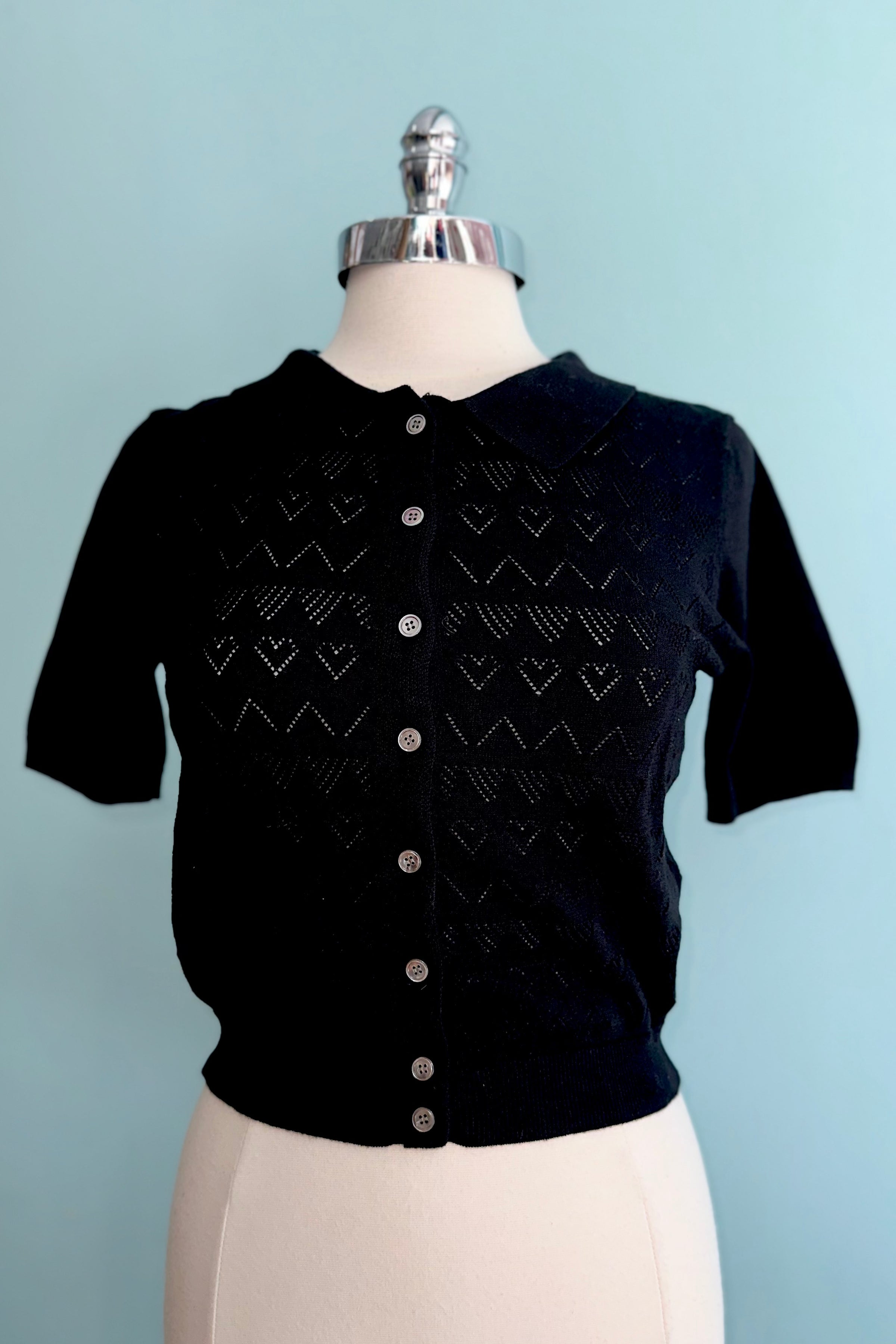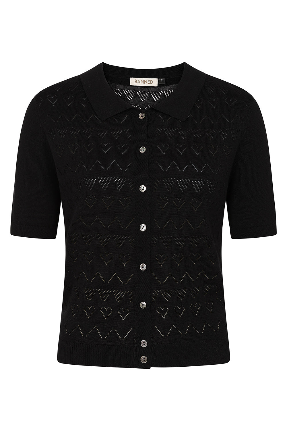 Collared Short Sleeve Heart Waves Cardigan in Black by Banned