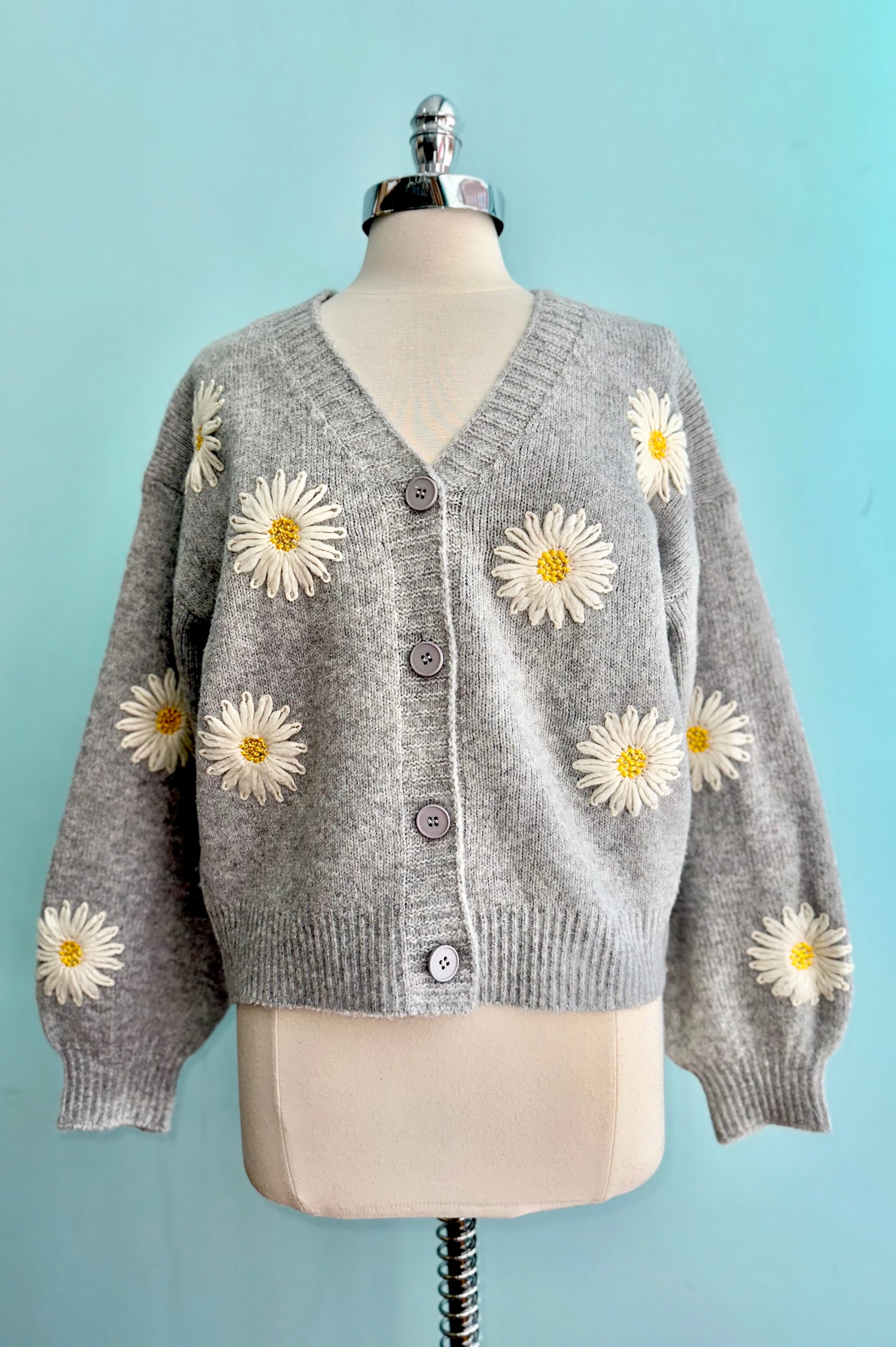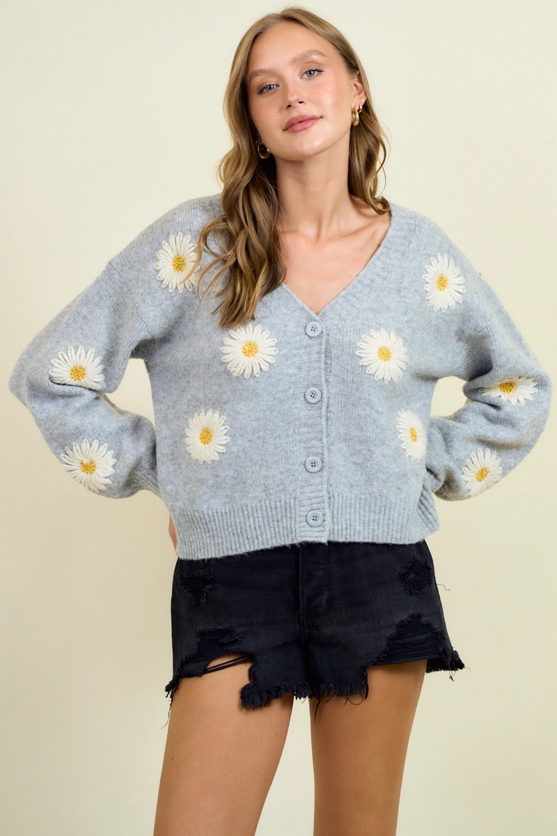 Grey Daisy Cardigan Sweater