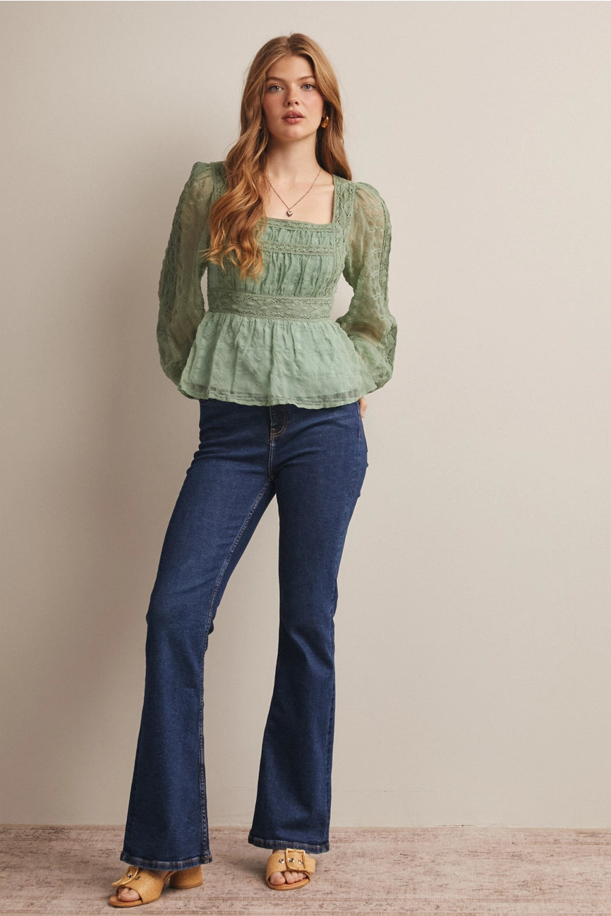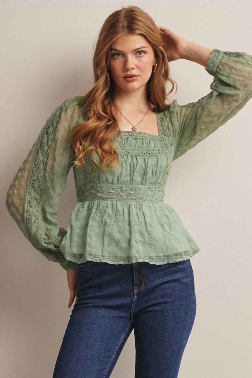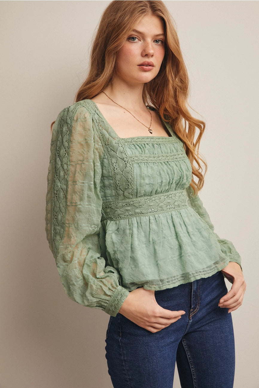 Seafoam Long Sleeve Peplum Lace Top